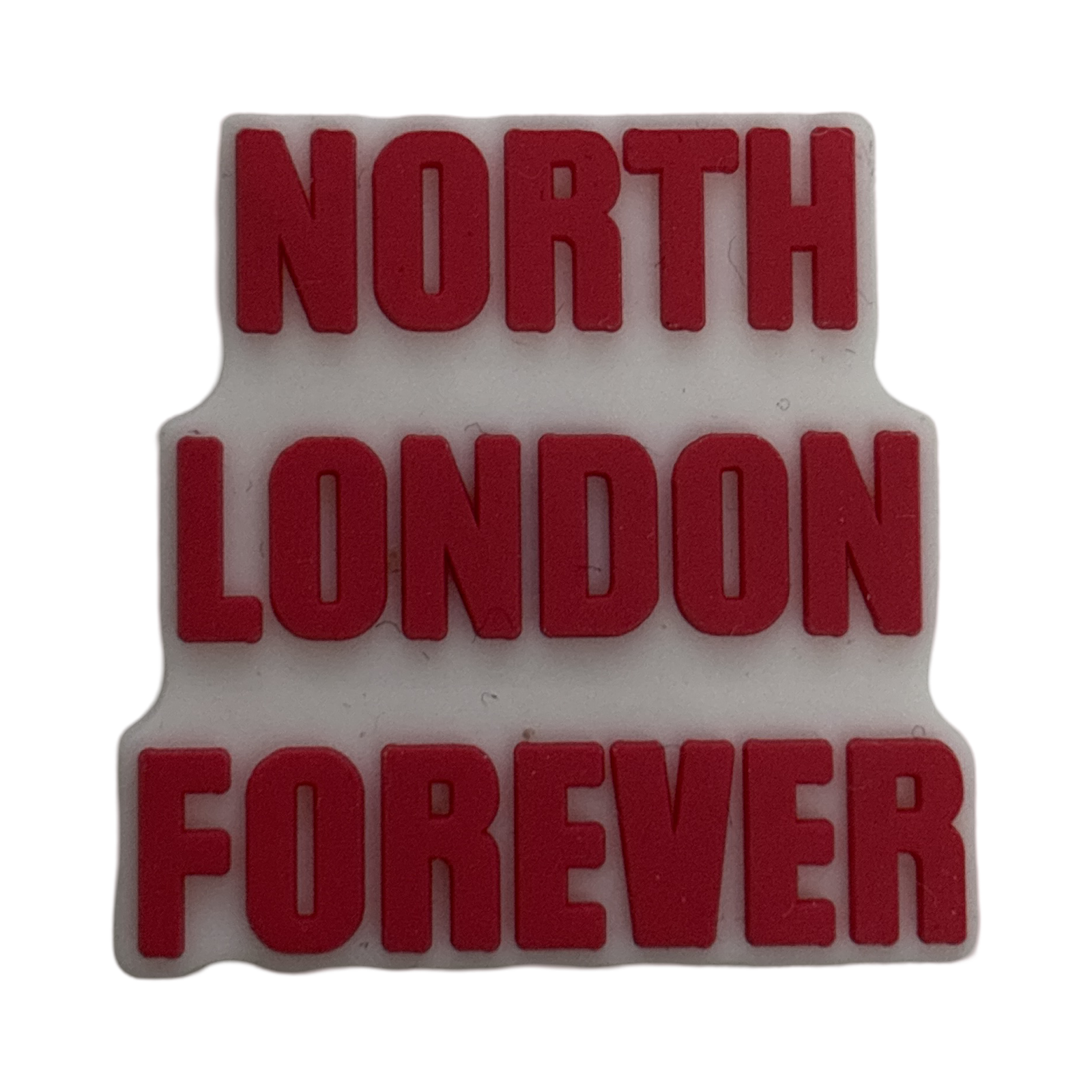 Transform your shoes into a statement of support for your beloved Arsenal Football Team with our North London Forever Croc Charm. Made with high-quality croc material, this charm adds a unique touch while showcasing your loyalty to the team. Elevate your shoe game and stand out as a true Arsenal fan.