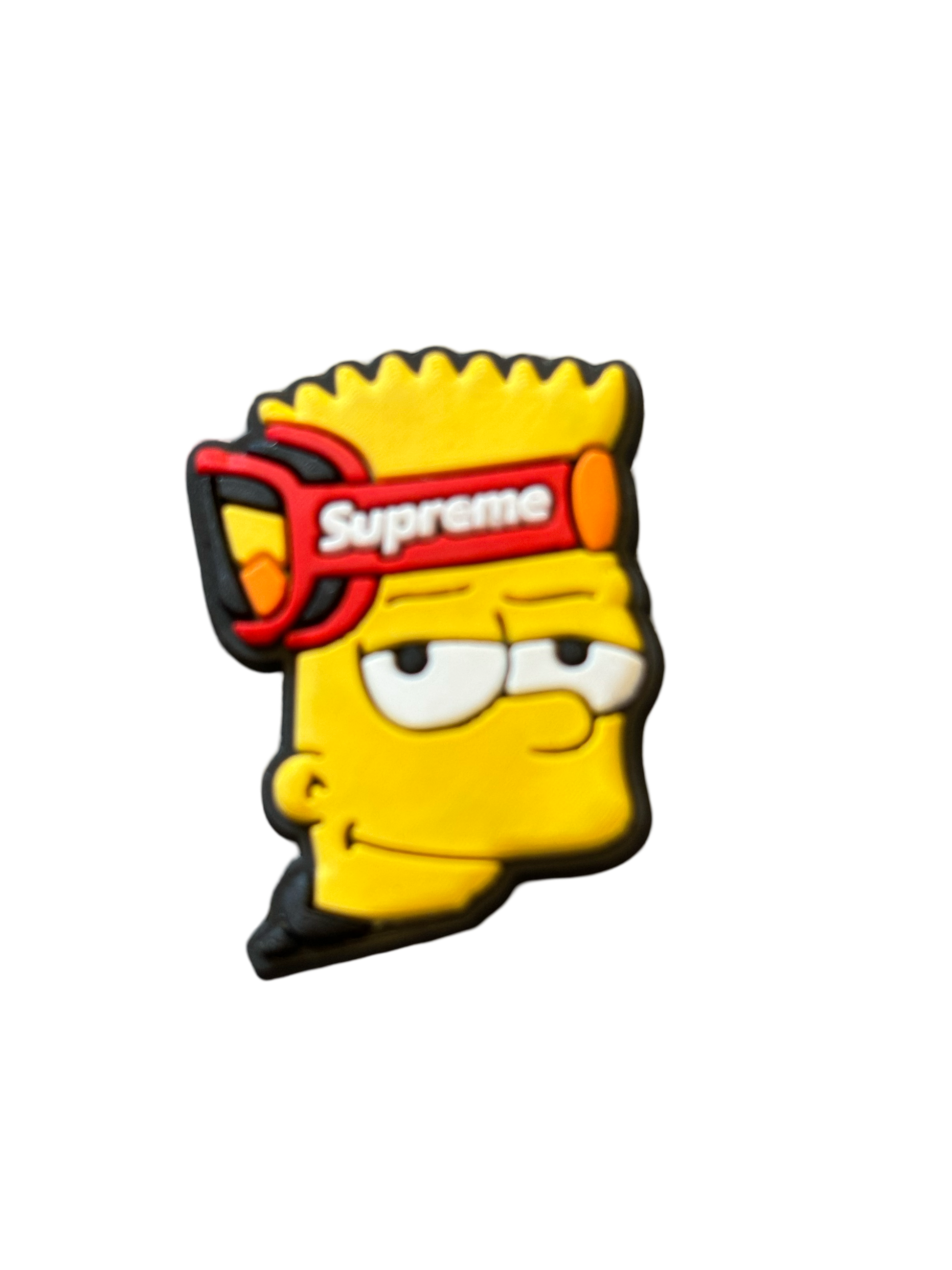 Elevate your style with the iconic and collectible Bart Simpson Supreme Croc charm. This versatile croc shoe charm adds a touch of fun and flair to any footwear. Made with high-quality material for durability, it is a must-have accessory for any croc enthusiast.