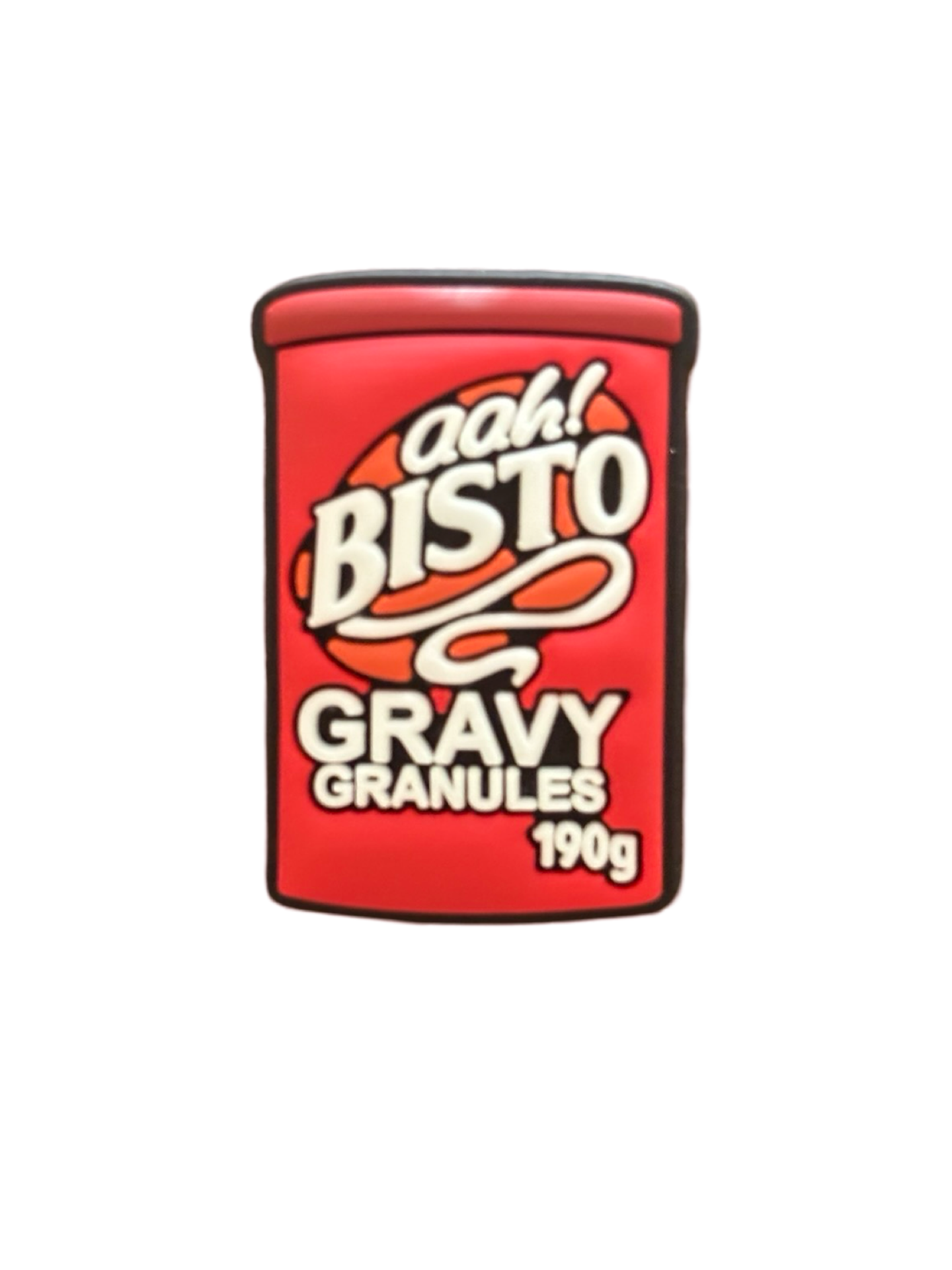 Enhance your shoe game with the Bisto Gravy Croc Charm. Made specifically for croc-style shoes, this charm adds a unique touch to your footwear. Made with high-quality materials, it is durable and long-lasting. Elevate your style with this trendy and fun accessory.