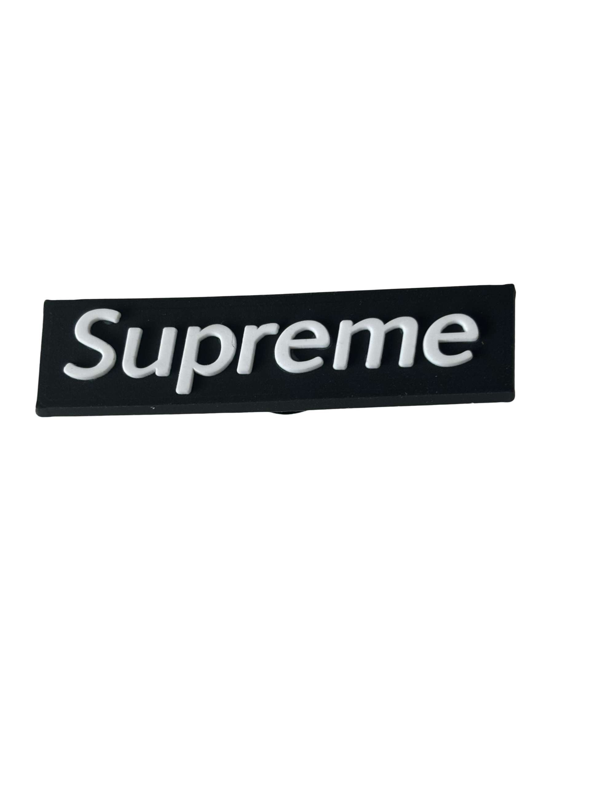 Enhance your shoe game with our Black Supreme Croc Charm. Made from premium materials, this shoe charm adds a touch of luxury to any croc. Elevate your style with the iconic Supreme croc design, perfect for any crochead. Upgrade your shoe collection now.
