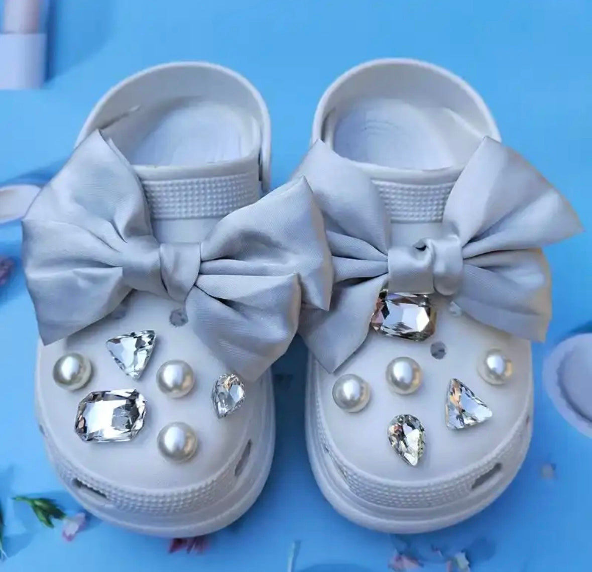 This 14 piece Bows Diamond & Pearl set includes a stunning combination of bow pearl diamonds for your croc shoes. Elevate your fashion game with this versatile and luxurious set. Perfect for any occasion, add a touch of elegance to your wardrobe with this must-have accessory.