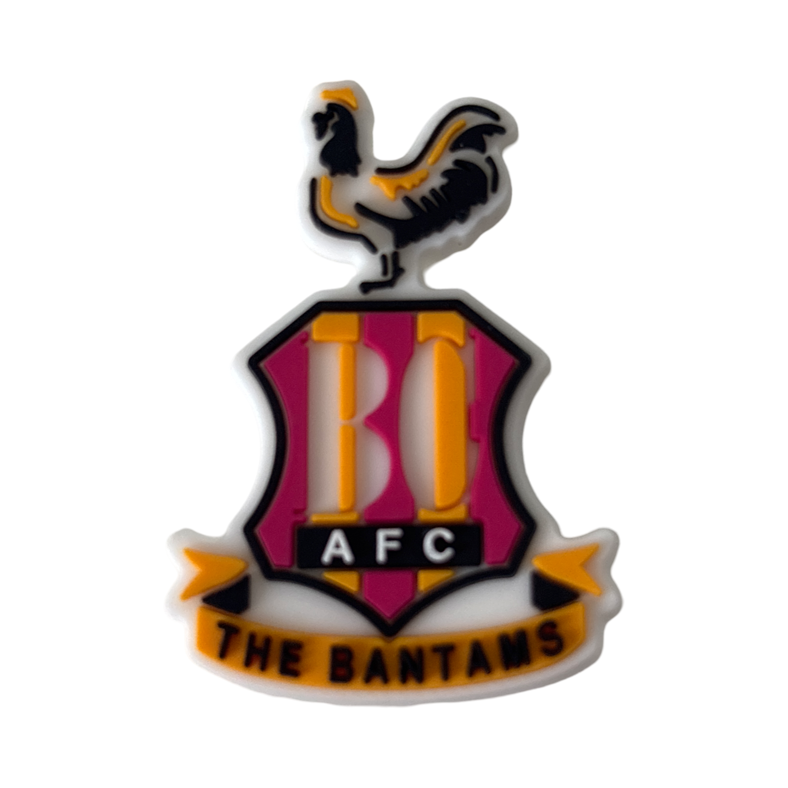 Enhance your style with the Bradford City Football Croc Charm. This unique charm adds a touch of football fandom to your shoewear. Made specifically for croc shoes, it is perfect for die-hard fans. Show your support for your team on and off the field with this stylish and functional accessory.