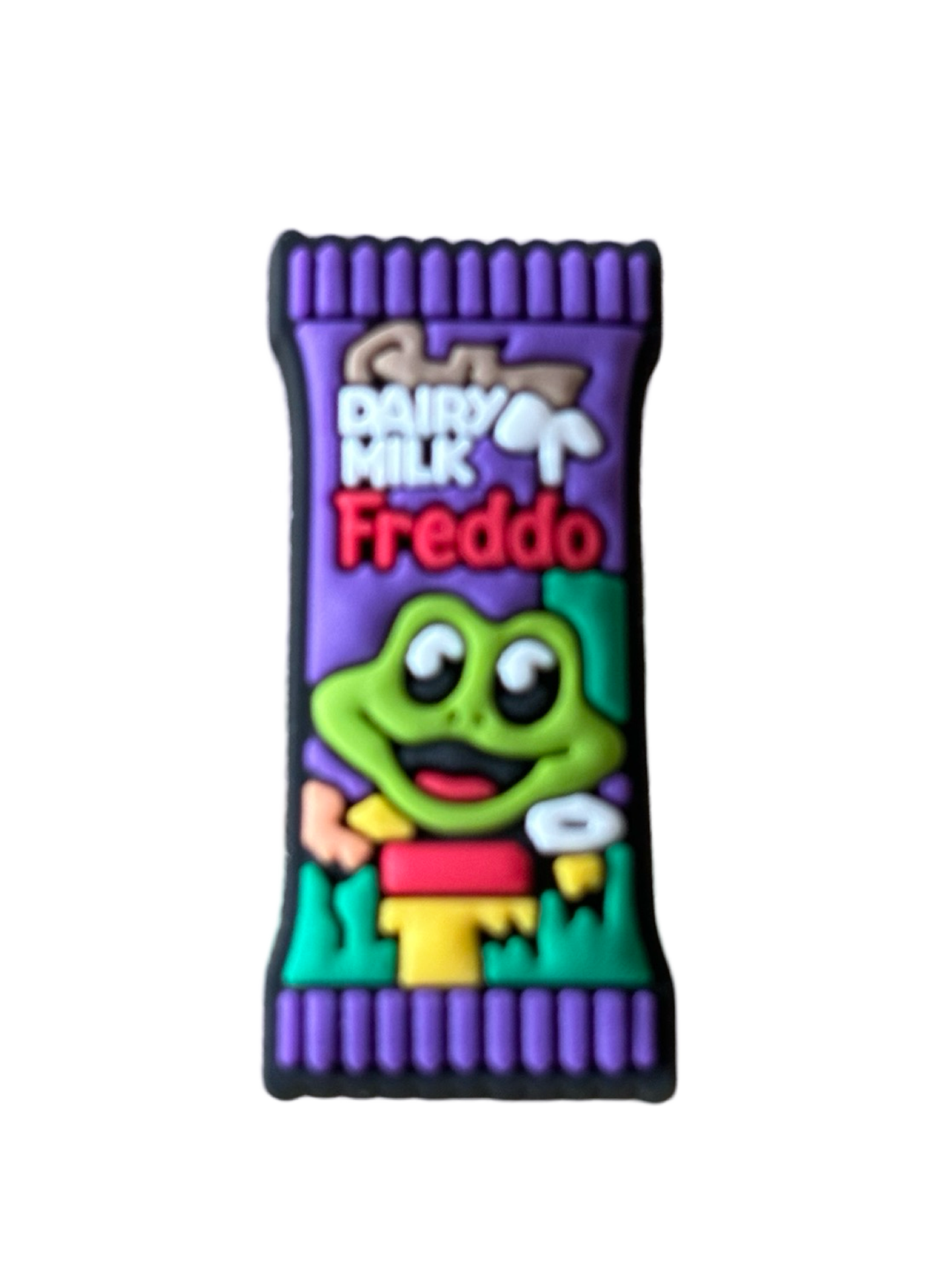 Introducing the Cadbury Freddo Croc Charm, a fun and playful addition to your shoe collection. This charming croc shoe charm will add a touch of unique style to any pair of shoes. Made with quality materials and expert craftsmanship, this charm is sure to stand out and impress.
