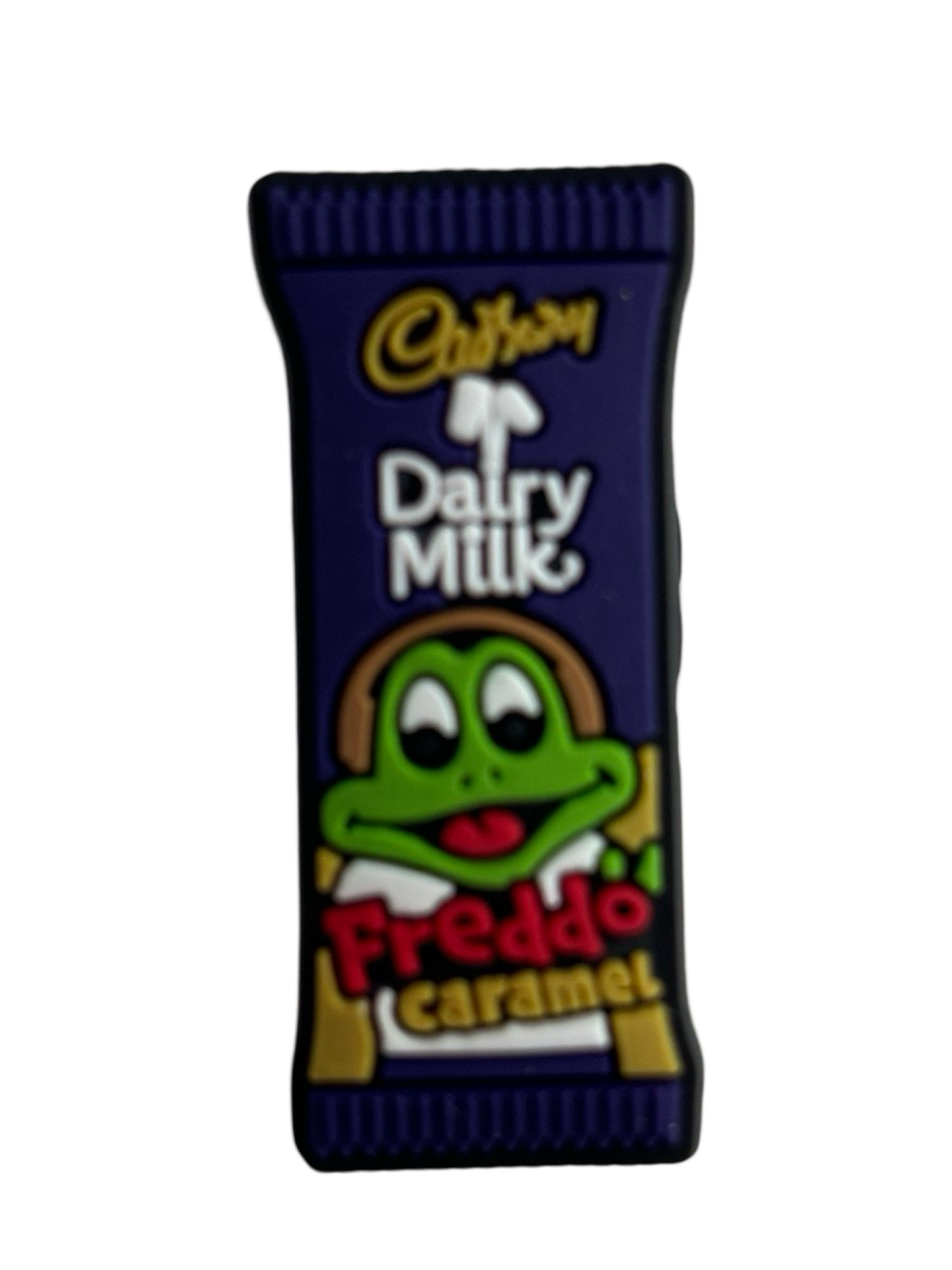 Add a playful touch to your footwear with Cadbury's Freddo Caramel Croc Charm. This unique charm features a crocodile shoe design, making it a fun and stylish addition to any pair of shoes. Elevate your shoe game and show off your love for Cadbury's with this charming accessory.
