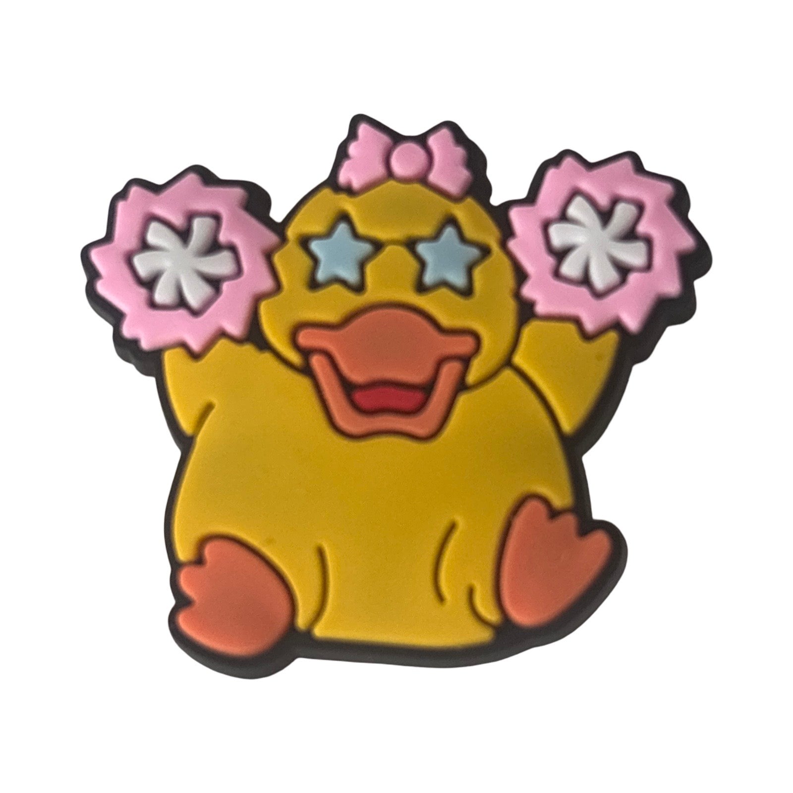 This cheerleading duck croc charm is a fun and unique accessory for your croc shoes. Made of durable material, it adds a touch of personality to your footwear. Perfect for cheerleaders or any duck lovers, this charm is sure to make a statement.