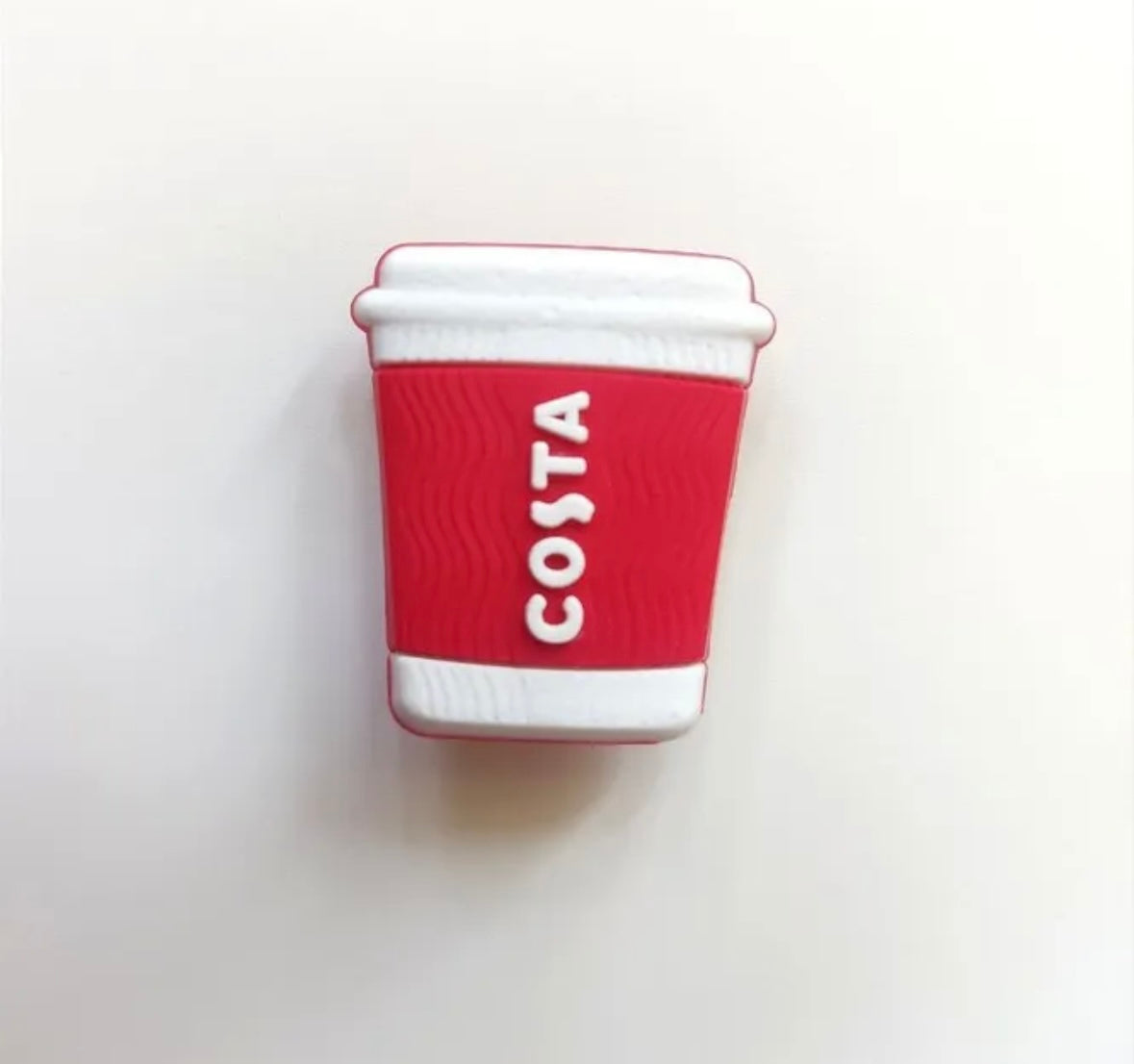 Introducing the Costa Coffee Croc Shoe Charm. Add a touch of personality to your shoes with this charming accessory. Made with high-quality materials, this charm features the iconic Costa coffee logo. Perfect for any coffee lover or fashion enthusiast, this charm is a must-have for your shoe collection.