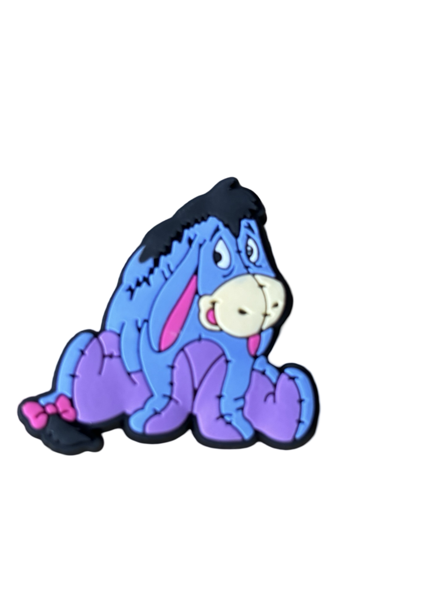 Upgrade your croc shoes with our Eeyore Croc Charm. Made with durable material, this croc shoe charm adds a touch of fun and personality to your footwear. Simply attach it to your favorite pair of crocs and stand out from the crowd.