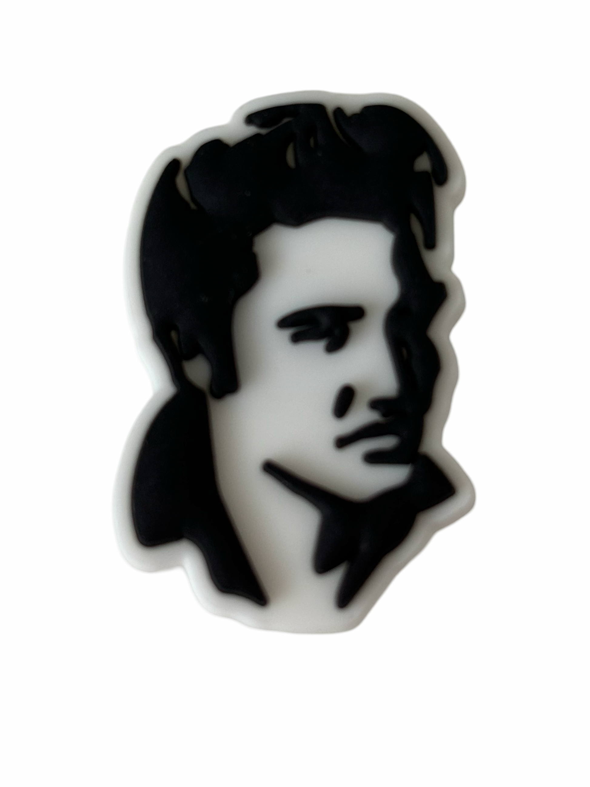 Enhance your shoe game with the Elvis Presley Croc Charm. This unique charm adds a touch of style to your Croc shoes. Made with durable materials, it's the perfect way to show off your love for the King of Rock and Roll. Transform your shoes into a statement piece today.