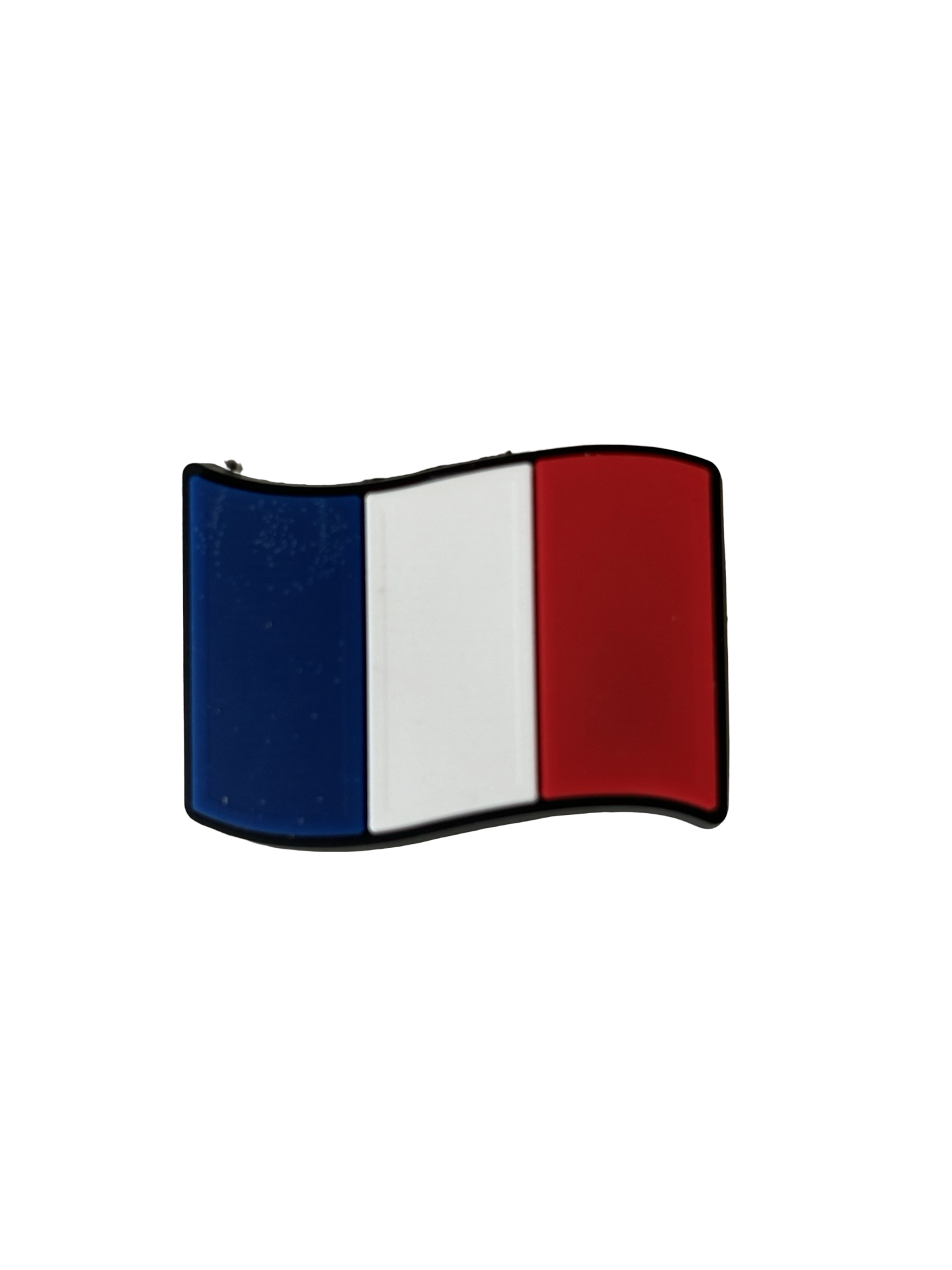 Add a touch of French flair to your favorite shoes with our French Flag Croc Charm. Made with high-quality materials, this charm features the iconic colors of the French flag, adding a stylish touch to your footwear. Perfect for those who appreciate both fashion and patriotism.