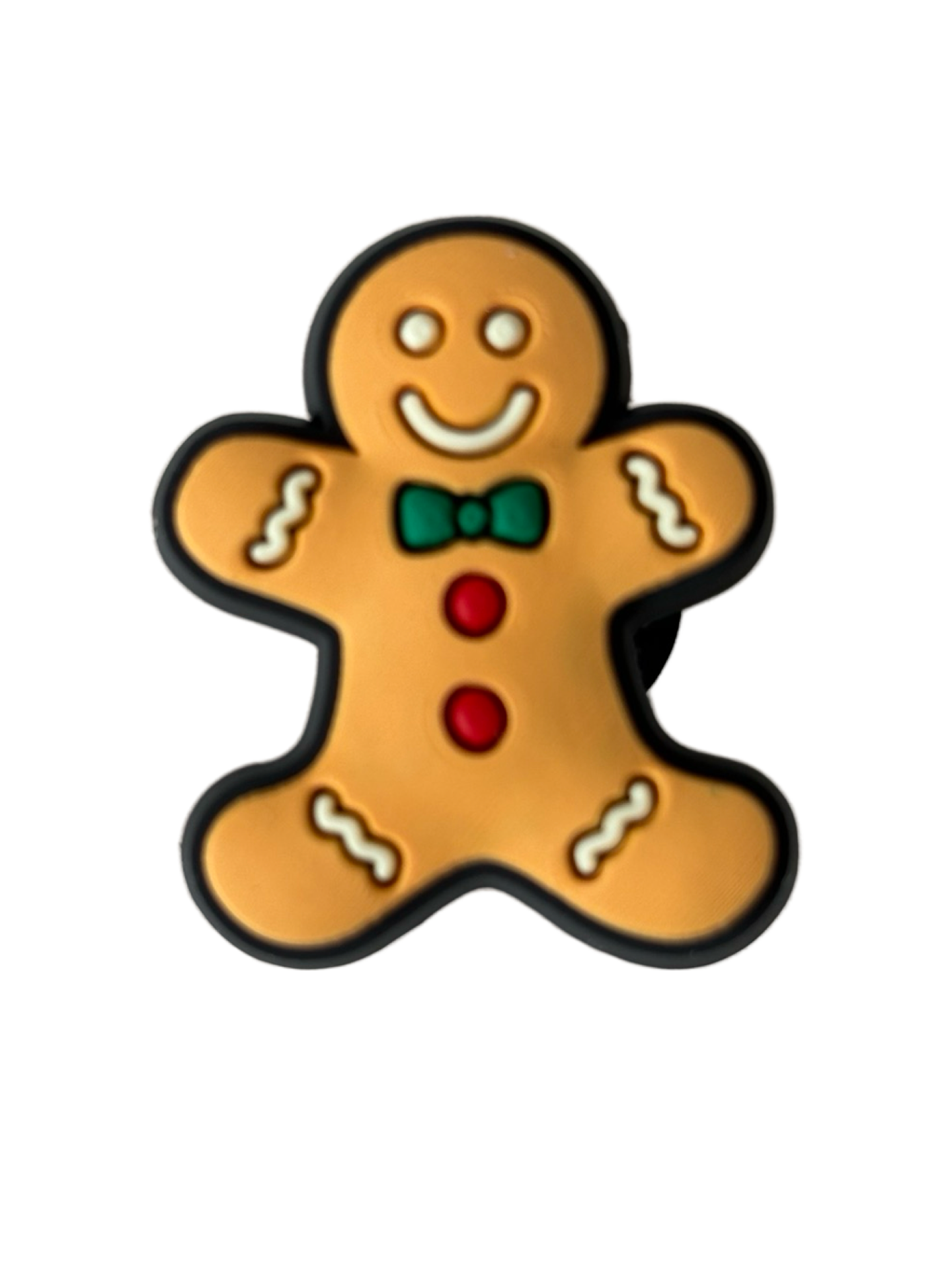 Add a festive touch to your Crocs with our Gingerbread Man shoe charm. Made with durable materials, this charm is designed to fit comfortably on any Croc shoe. Spice up your shoe game this holiday season with our adorable and unique Gingerbread Man charm.