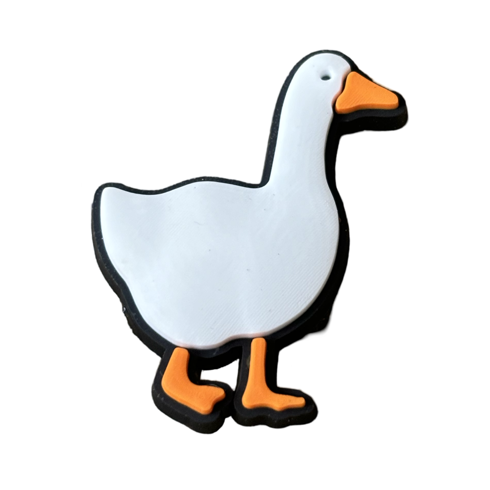 Enhance your shoe game with our Goose Croc Charm. This sleek croc-shaped charm adds a touch of personality to any shoe. Made with high-quality materials, it is durable and stylish. Treat yourself or give as a gift to any shoe lover.
