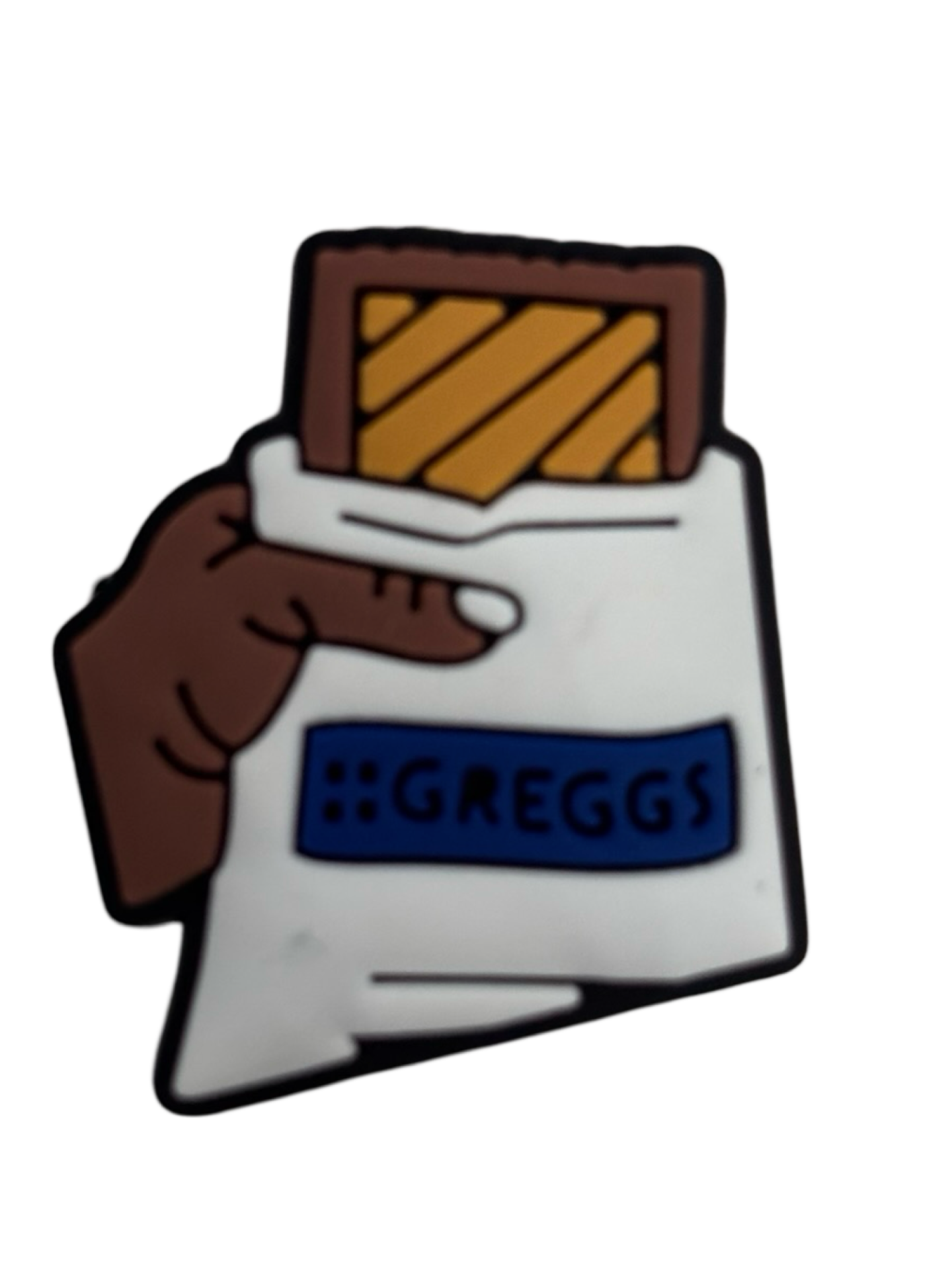 "Enhance your shoe game with Greggs Pasty Steak Bake Croc Charm. This croc shoe charm adds a unique touch to your footwear, perfect for those looking to stand out from the crowd. Made with high-quality materials, this charm is durable and long-lasting. Spice up your style with Greggs Pasty Steak Bake Croc Charm."