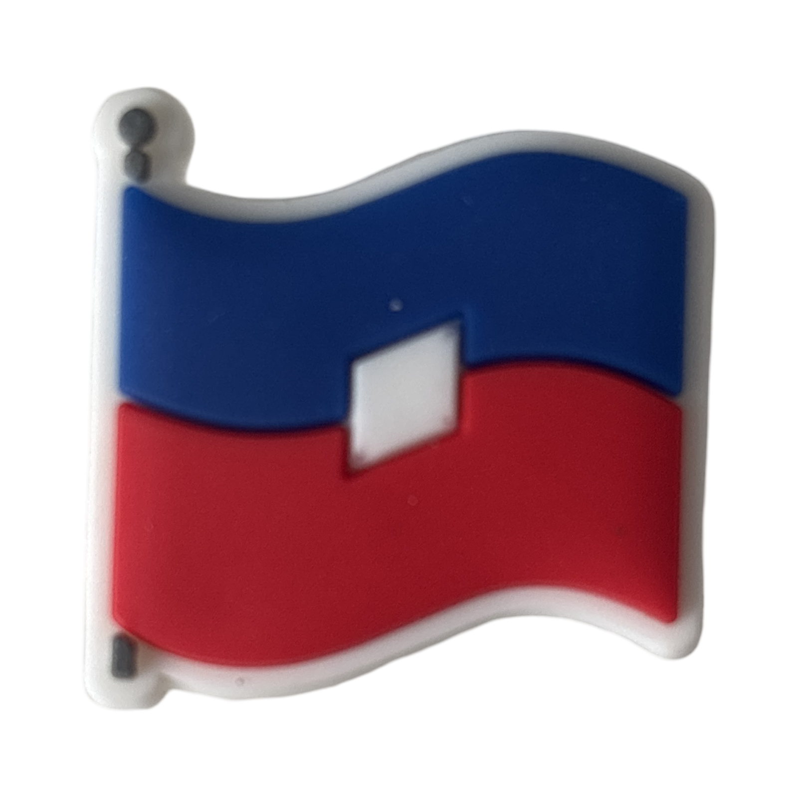 Discover a new way to show your love for Haiti with our Haiti Flag Croc Charm. This unique croc shoe charm features the iconic Haitian flag, adding a stylish and meaningful touch to your footwear. Show your national pride and make a statement with our Haiti Flag Croc Charm.