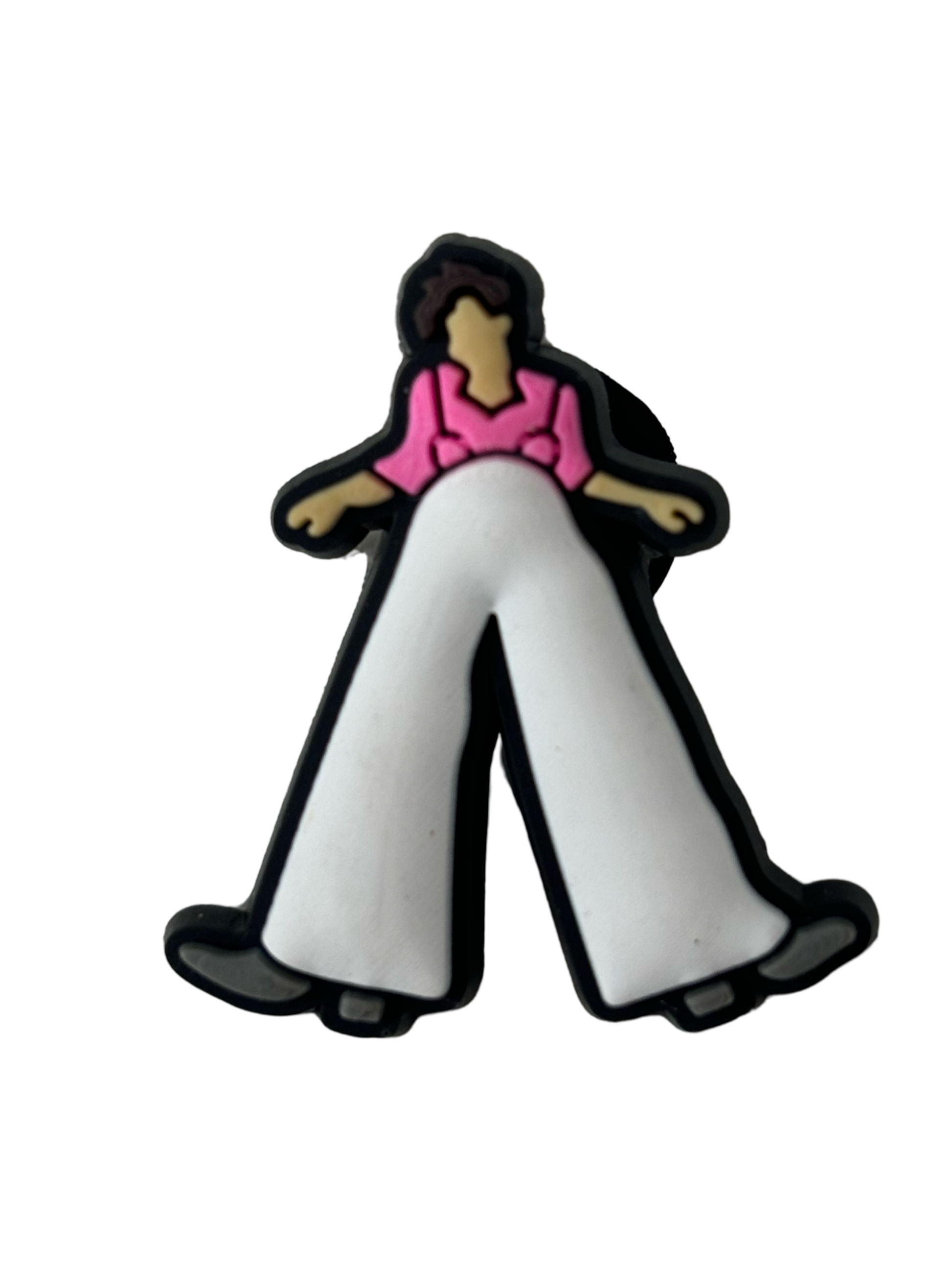 Enhance your shoe game with the Harry Styles Croc Charm. Made specifically for croc shoes, this charm will add a stylish touch to any outfit. Crafted with quality materials, this charm is durable and easy to attach. Elevate your style with this unique accessory.