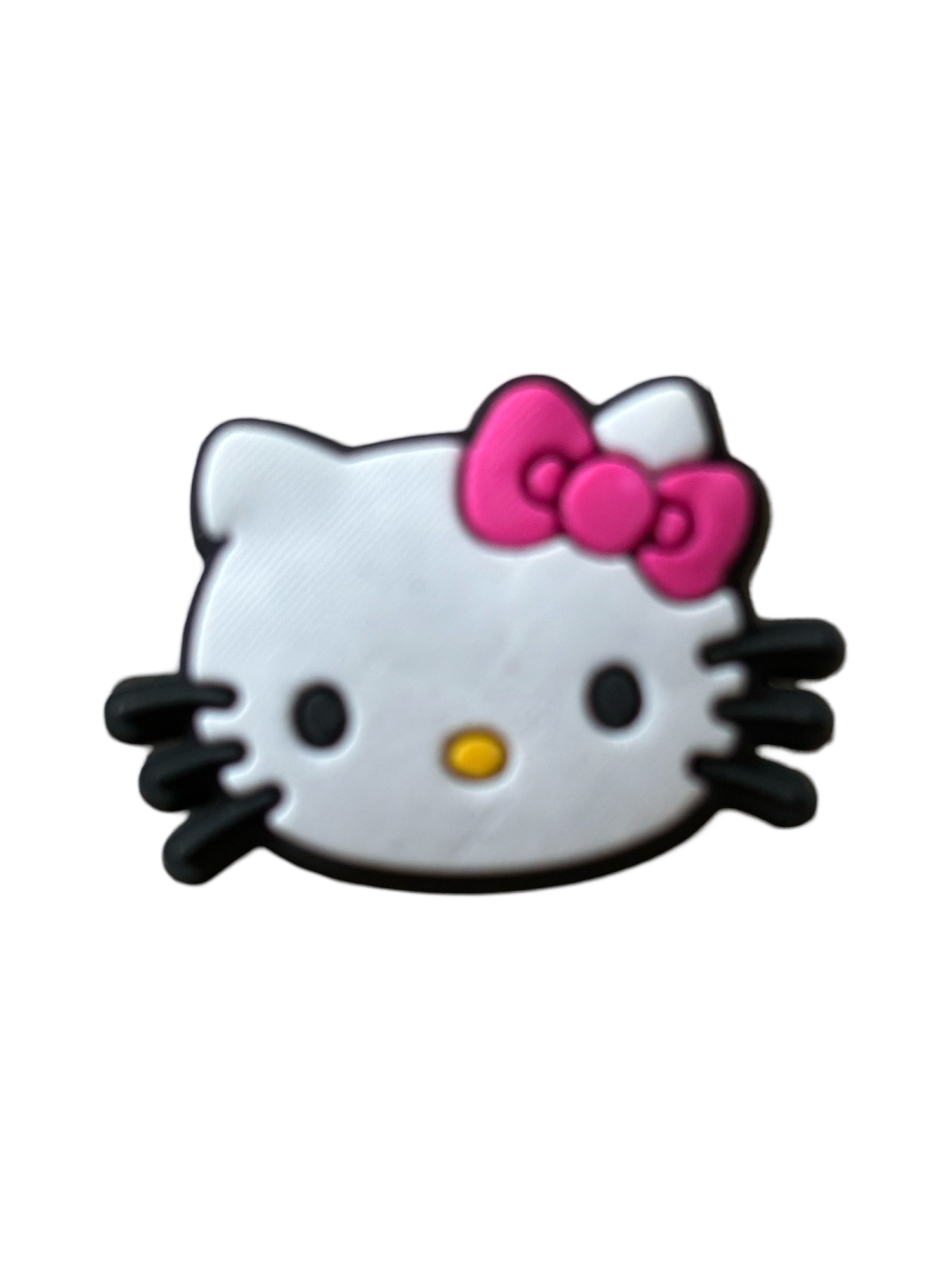 Introducing the Hello Kitty Croc Charm - a fun and stylish accessory! Made specifically for Crocs, this charm adds a touch of personality to your shoe game. With its vibrant colors and iconic design, it's the perfect way to show off your love for Hello Kitty. Upgrade your Crocs today!