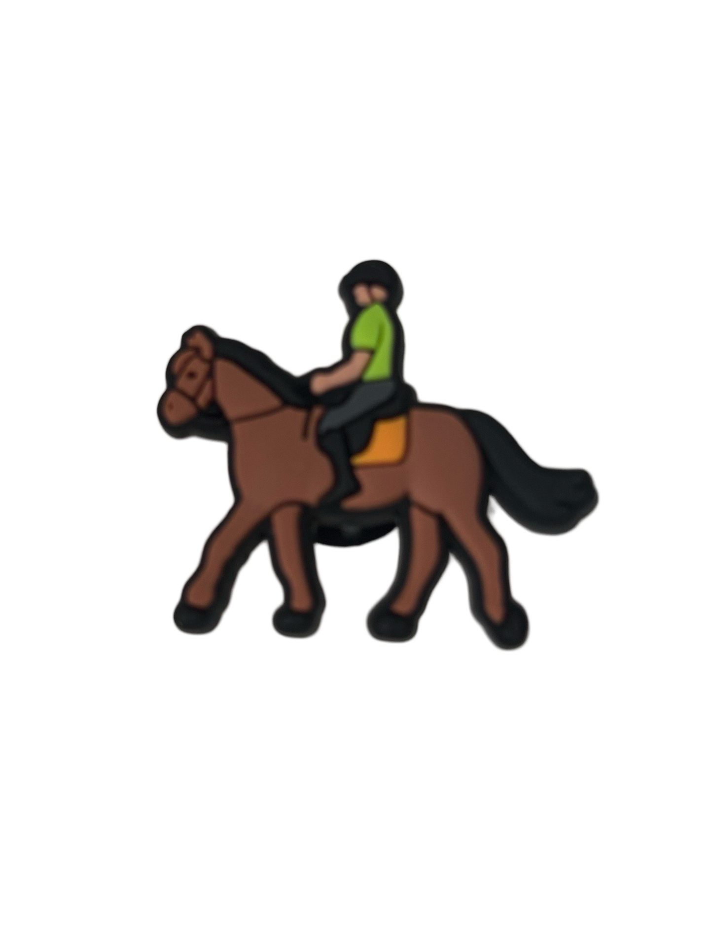 Expertly designed for equestrian enthusiasts, our Horse Riding Croc Charm adds a unique touch to your shoes. With intricate detailing and a durable design, this shoe charm is perfect for showing off your love for horse riding. Make a statement with our Horse Riding Croc Charm.
