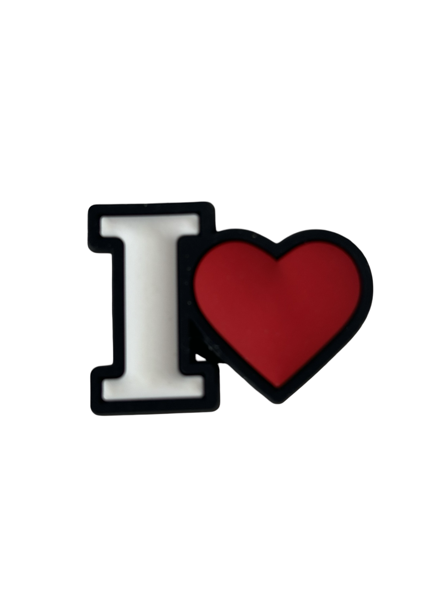 Easily add a playful touch to your shoes with our I Love Croc Charm. Made specifically for croc shoes, this charm brings a unique and fun twist to your footwear. Made with durable materials, it will withstand daily wear with ease. Perfect for croc lovers and shoe enthusiasts alike.