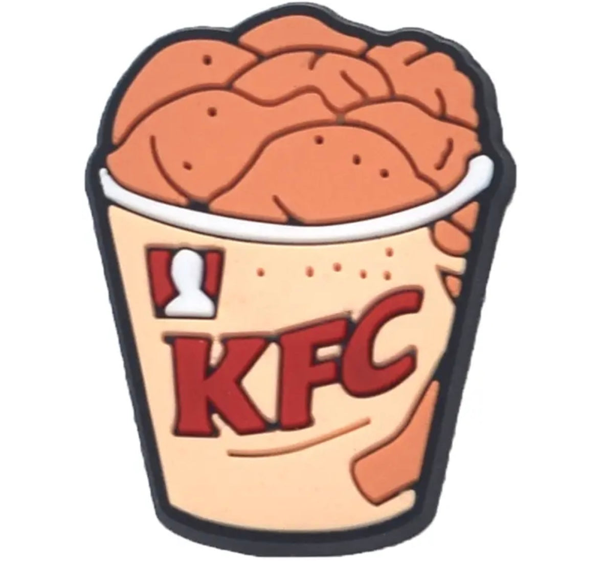 Introducing the KFC chicken croc charm, a must-have accessory for any fast food lover. Made with durable materials and featuring the iconic KFC chicken drumstick, this charm is perfect for adding a touch of fun to any shoe. Show off your love for KFC and make a statement with this unique charm.