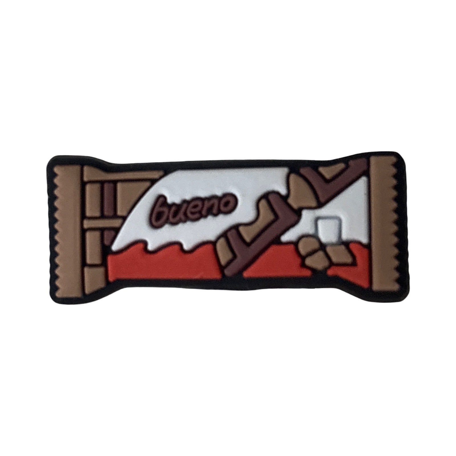 Add a unique and playful touch to your shoe collection with the Kinder Bueno Croc Charm. This fun accessory is designed as a croc shoe, adding a pop of charm to any pair of shoes. Made with high-quality materials, it's a durable and stylish addition to your shoe game.