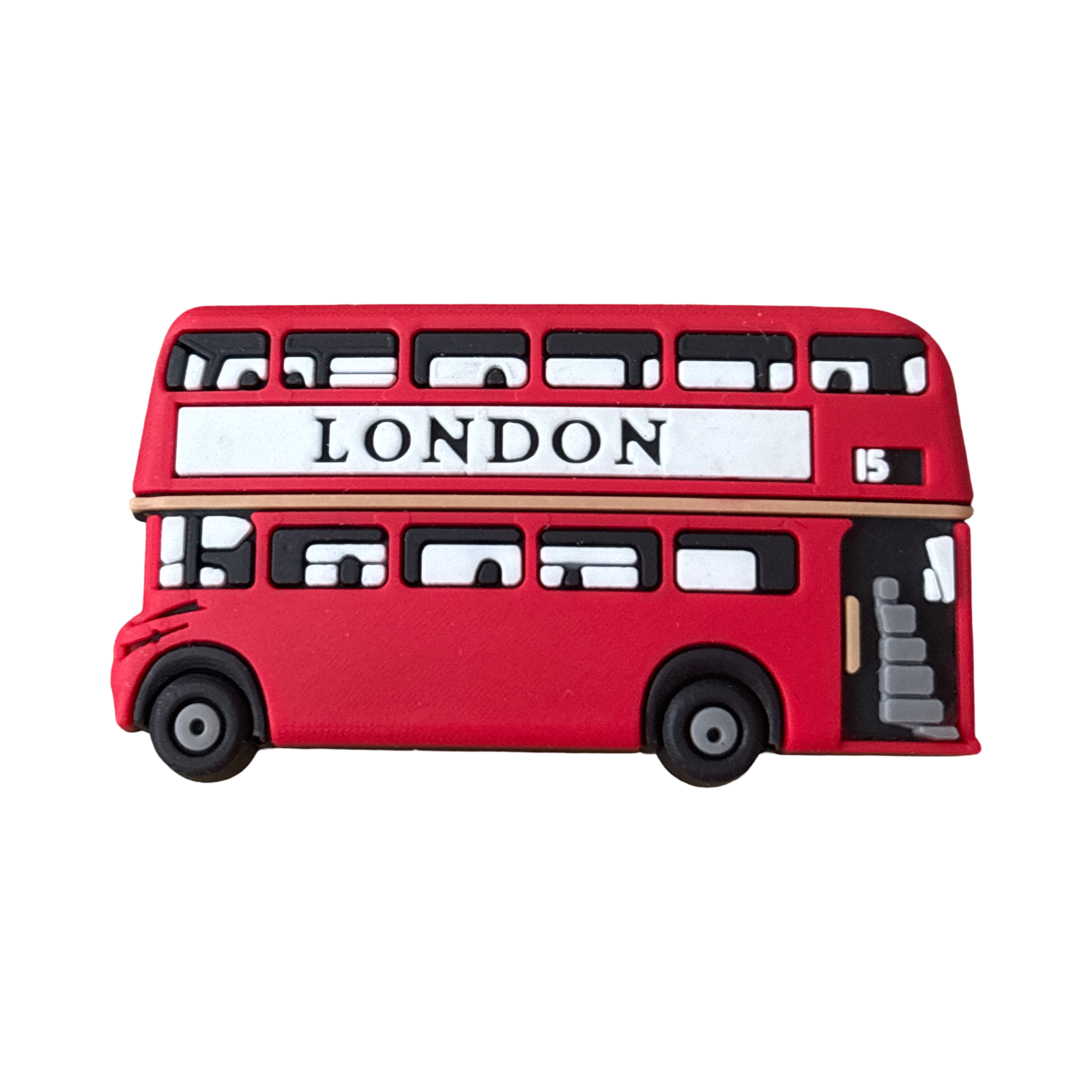 Add a touch of London charm to your shoes with our London Bus Croc Charm. Made with high-quality croc material, this shoe charm is a fun and unique way to add some personality to your footwear.