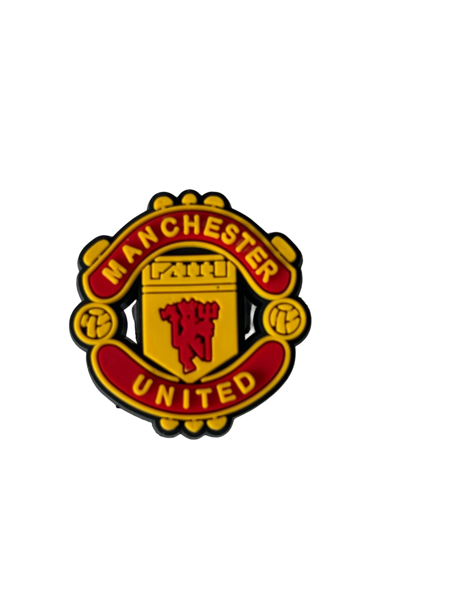 Elevate your shoe game with the Manchester United Football Croc Charm. This official club merchandise features the iconic Manchester United logo in a fun and unique shoe charm design. Show off your love for the team while adding a touch of personality to your shoes. A must-have for any true fan.