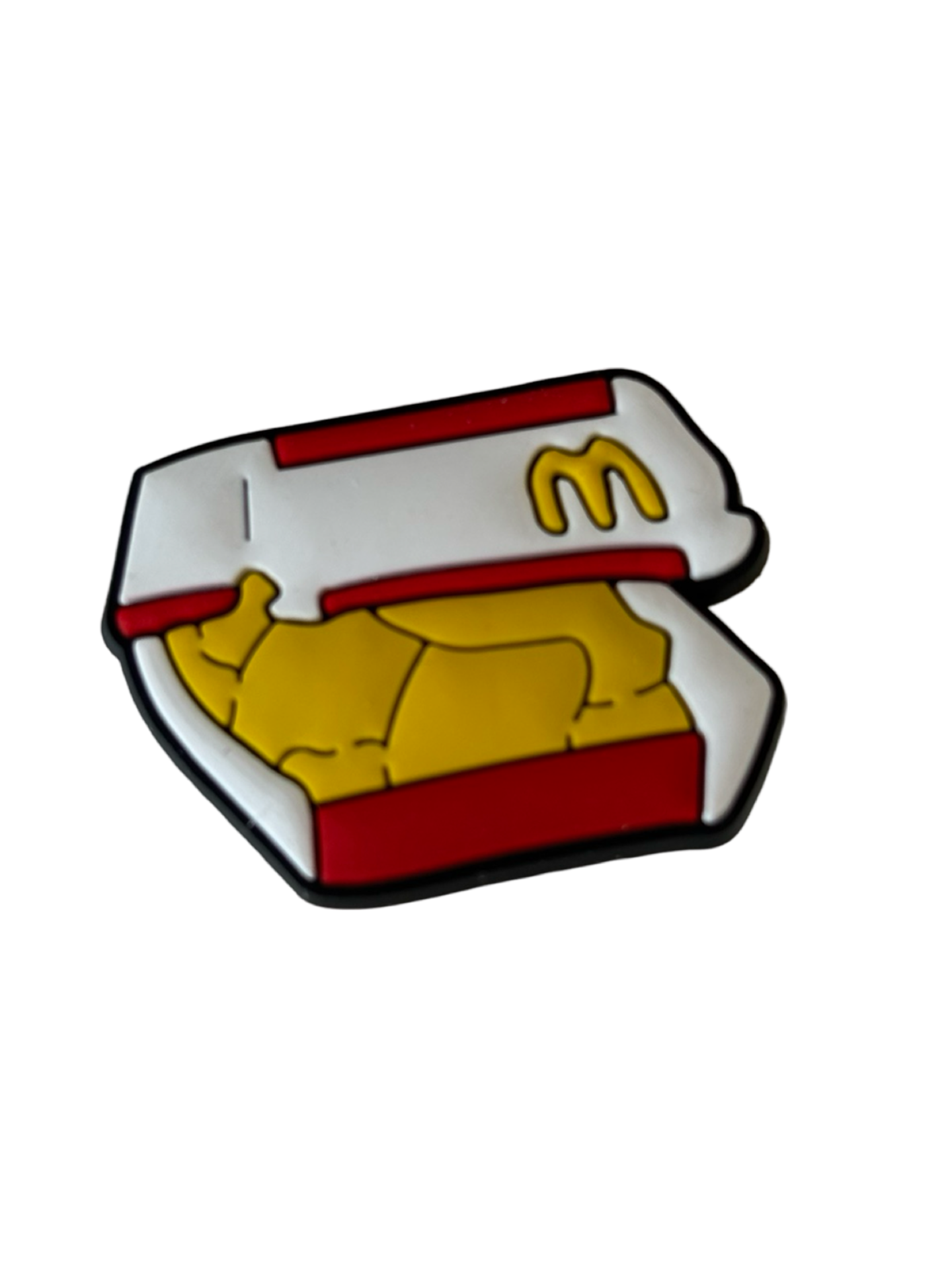 Elevate your style with the McDonald’s Chicken Nuggets Croc Charm. Perfect for any Croc shoe, this charm features the iconic shape and texture of McDonald’s chicken nuggets. Add it to your collection and show your love for this delicious fast food staple.