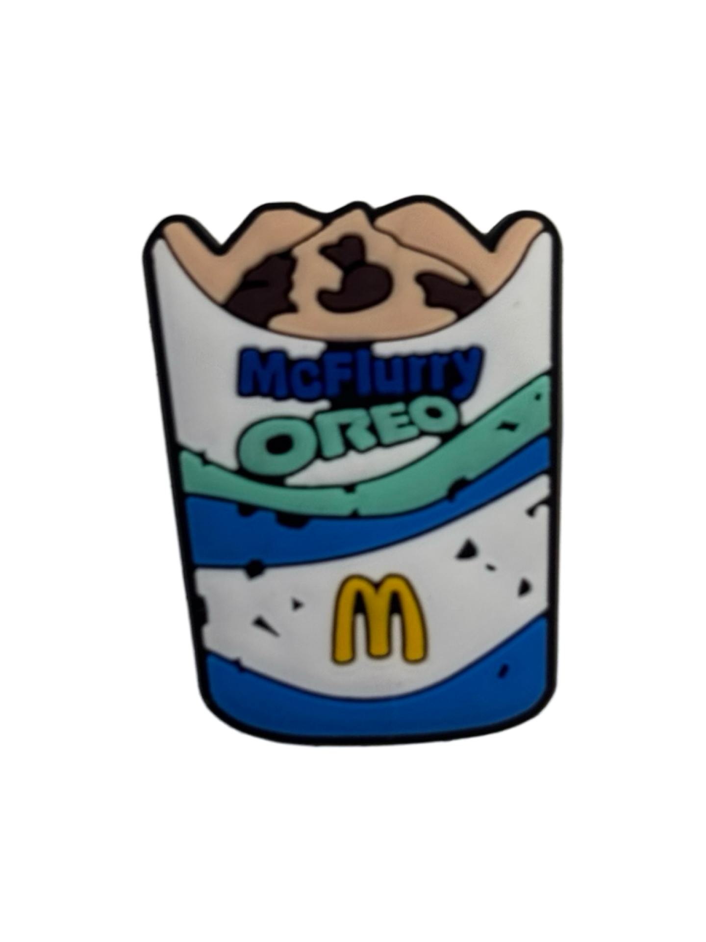 Enhance your style with the McDonald's Oreo McFlurry Croc Charm. This croc shoe charm adds a touch of playfulness to your footwear while showcasing your love for the iconic McFlurry. Made with high-quality materials, it is durable and easy to attach and remove. A perfect addition to any shoe collection.