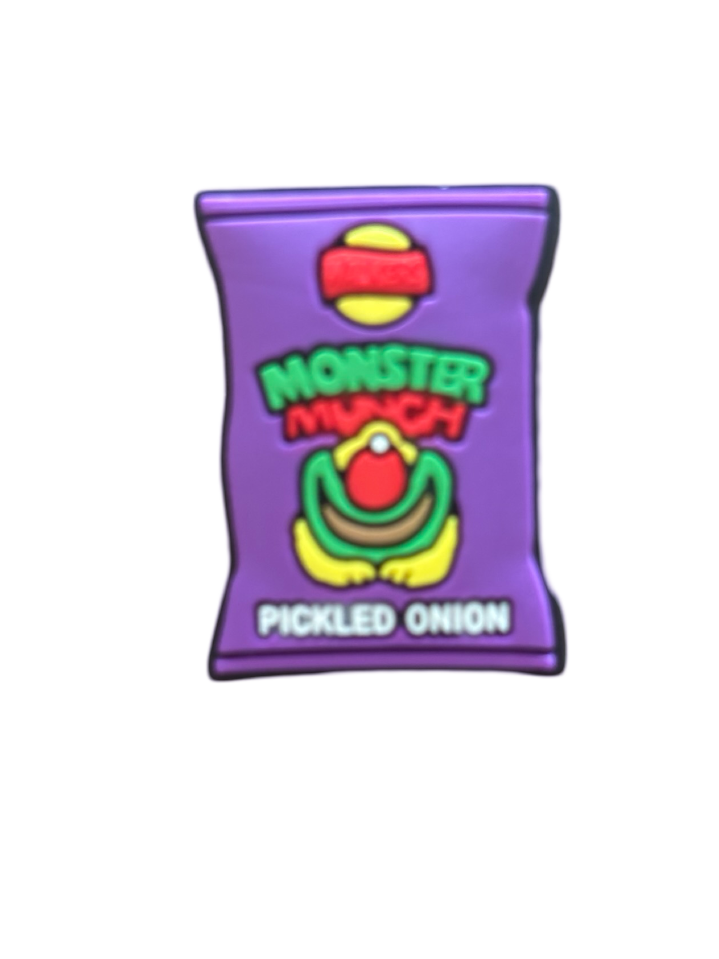 Enhance your shoe game with the Monster Munch Croc Charm. Made of durable material, this shoe charm adds a unique touch to your footwear. Its monster munch design is sure to make a statement and elevate your croc game.