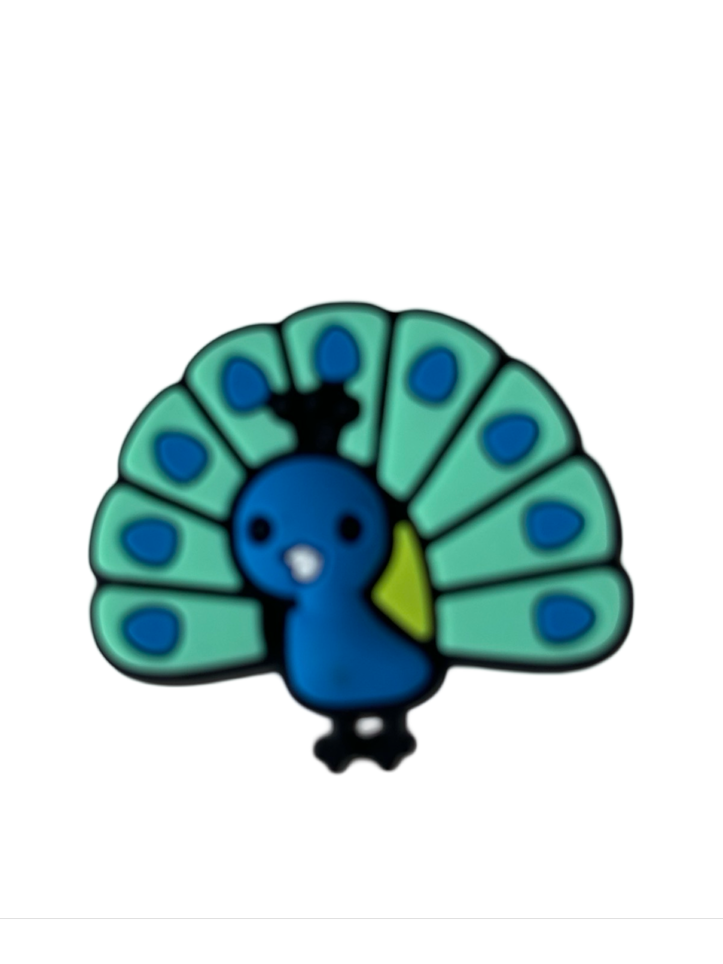 Add a unique touch to your shoes with our Peacock Croc Charm. Made with high-quality materials, this croc shoe charm is perfect for those looking to elevate their style. Expertly crafted with intricate details, this charm is sure to make a statement and add a touch of elegance to any outfit.