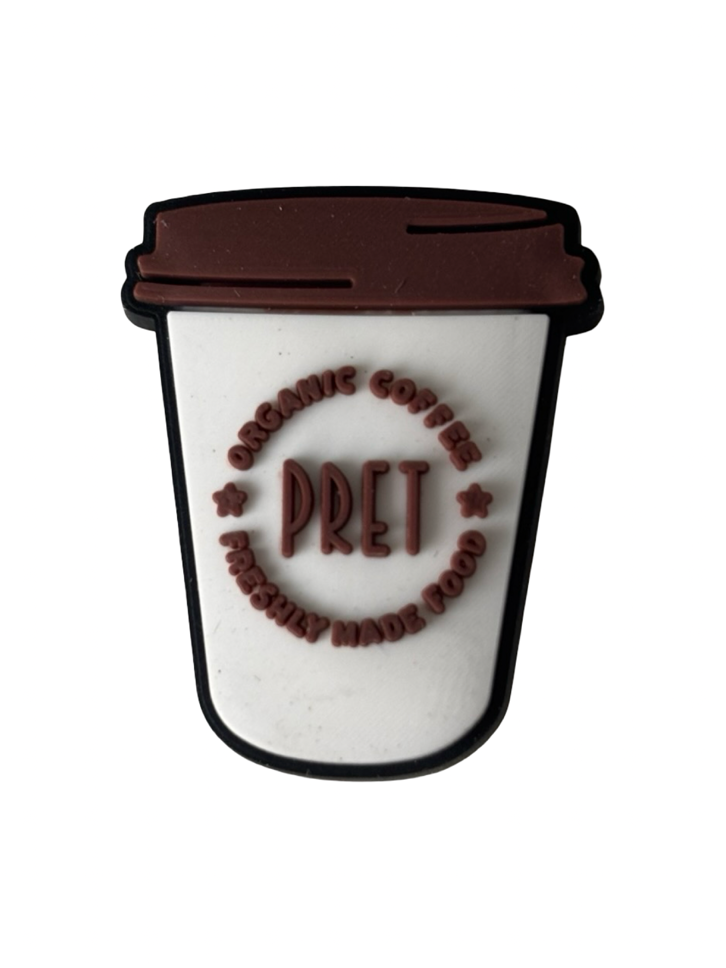 Enhance your accessories with our Pret Coffee Croc Charm! Made with a croc shoe design, this charm adds a unique touch to any bag or keychain. Crafted with precision and attention to detail, it's the perfect addition to show off your love for coffee and fashion.