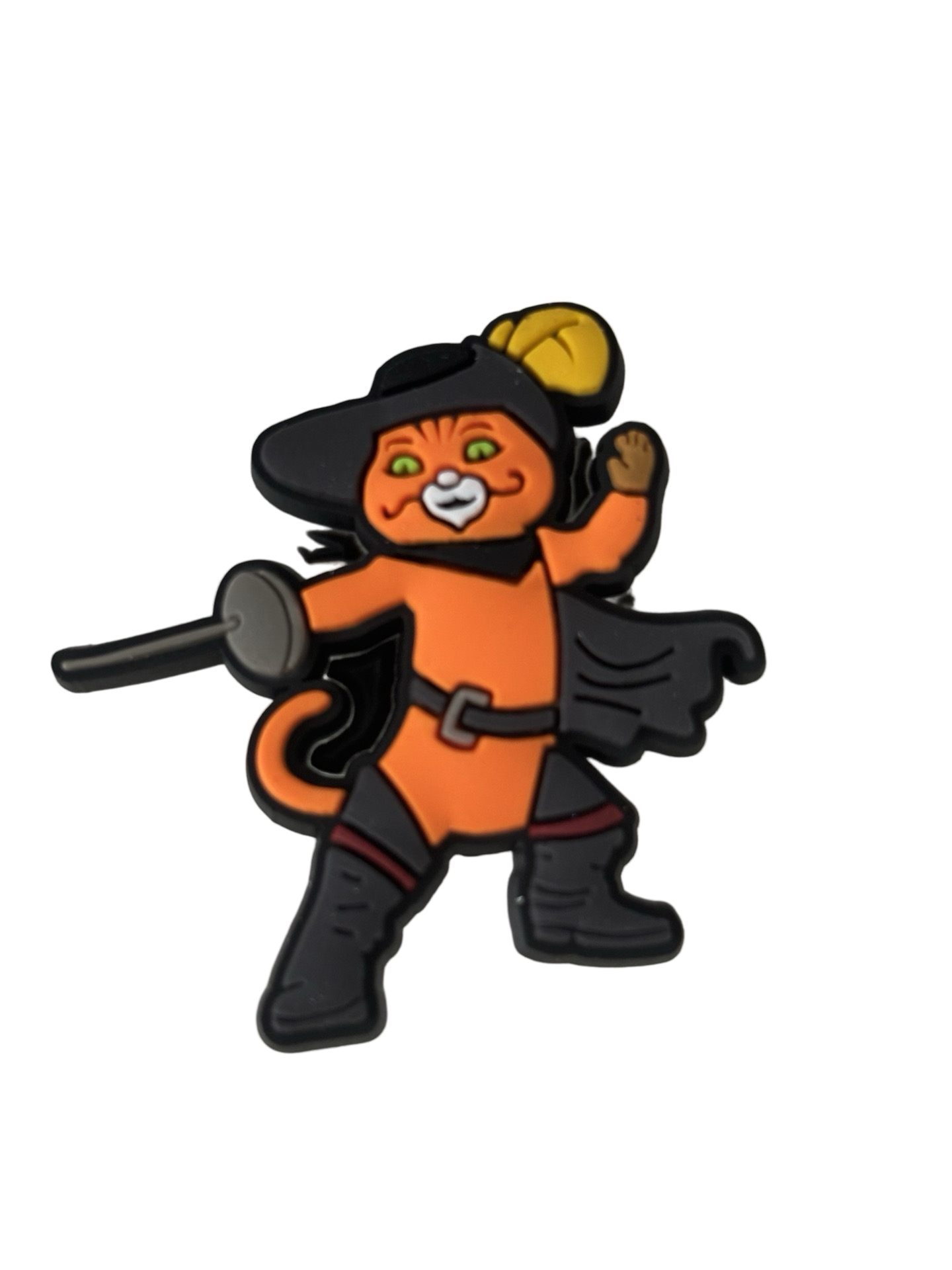 Enhance any shoe with this Puss in Boots Croc Charm. Made specifically for croc-style shoes, this charm adds a touch of whimsy to your footwear. With its fun and playful design, it's the perfect accessory for any shoe-lover. Show off your love for the iconic Puss in Boots character with this charming addition to your shoe collection.