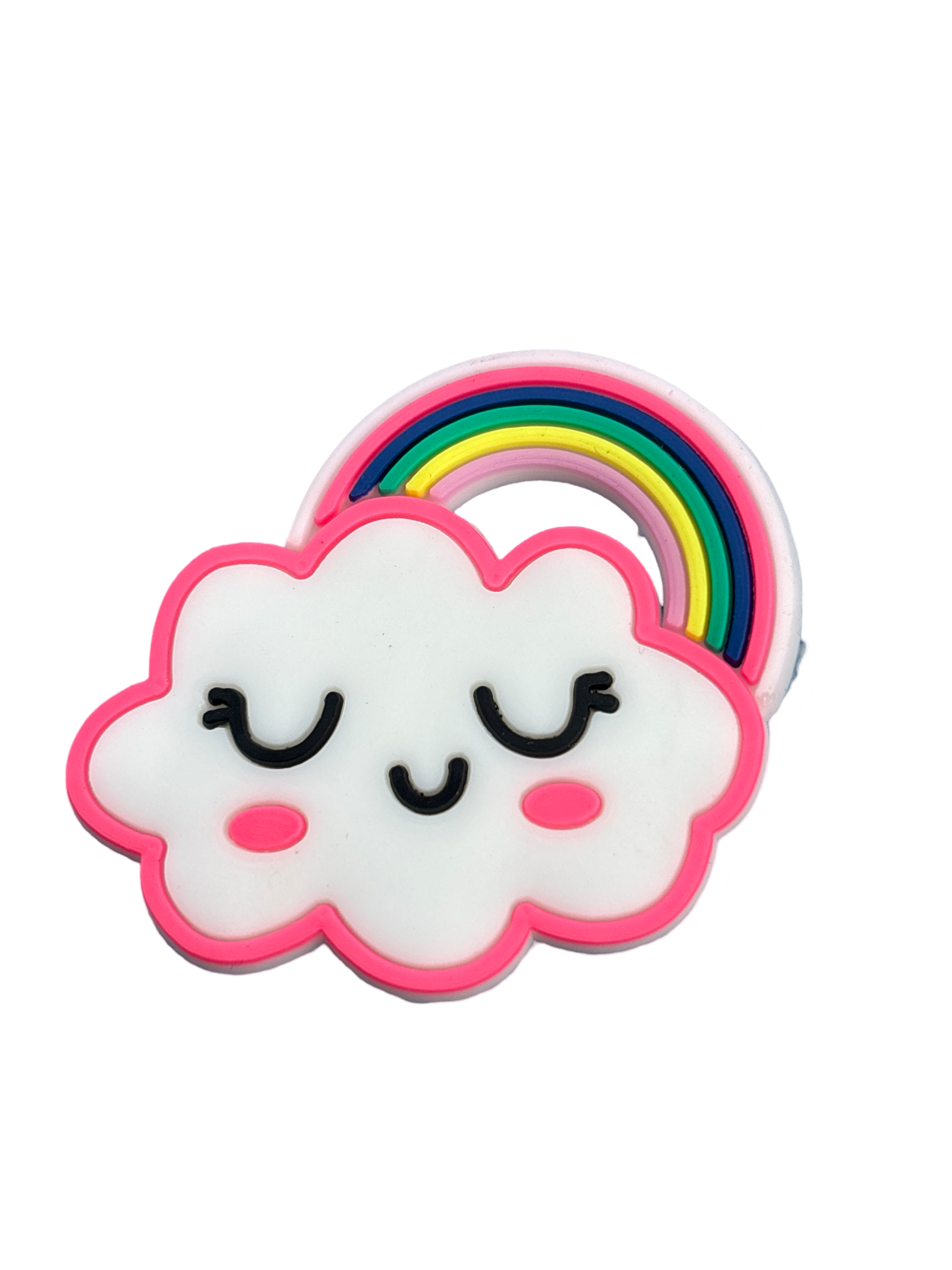 Add a touch of color to your shoe collection with our Rainbow Cloud Croc Charm. Made to fit most croc shoes, this charm adds a fun and unique element to your footwear. Show off your style with this eye-catching accessory.