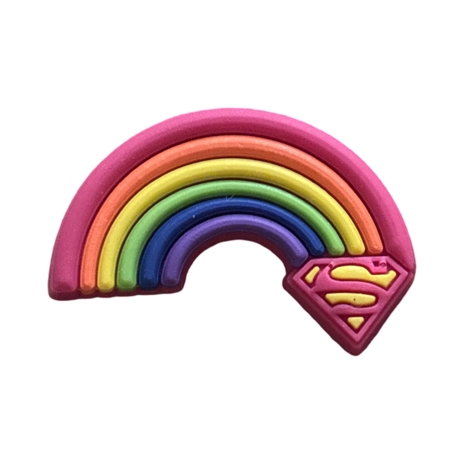 Add a touch of fun and whimsy to your shoes with our Rainbow Superwoman Croc Charm. Made of durable croc material, this shoe charm is perfect for adding a pop of color to your favorite pair of kicks. Bring some personality to your shoes and stand out from the crowd with this unique and stylish accessory.