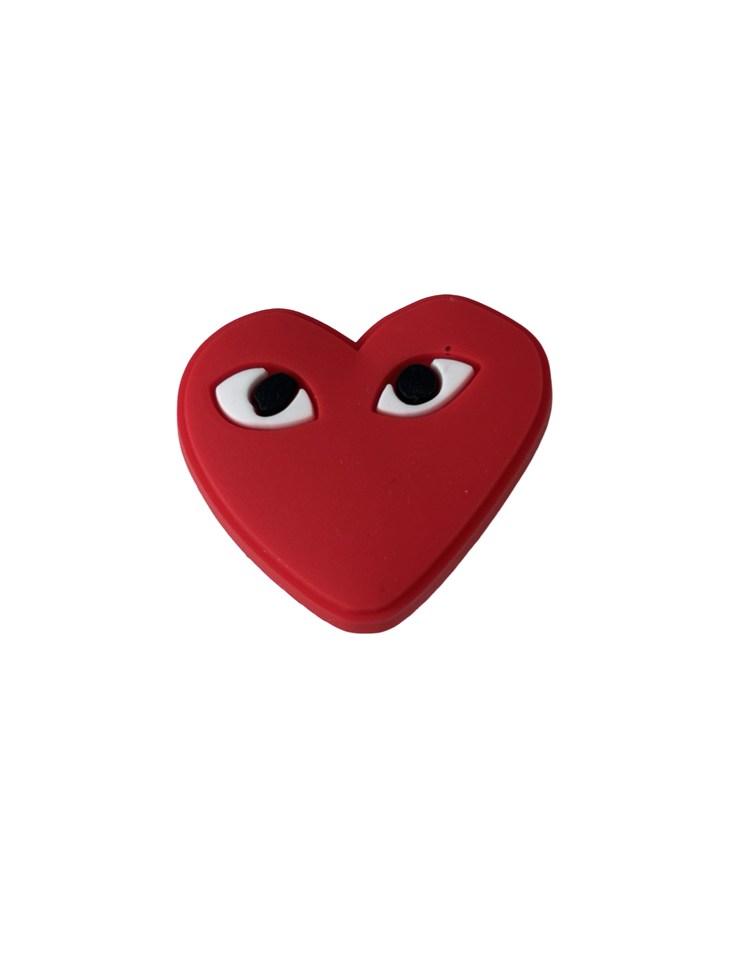 This Red Play Heart Croc Charm is a playful addition to any shoe, featuring a vibrant red heart design. Made with high-quality materials, this charm is a stylish and fun way to personalize your shoes. Add a touch of whimsy to your footwear with the Red Play Heart Croc Charm.