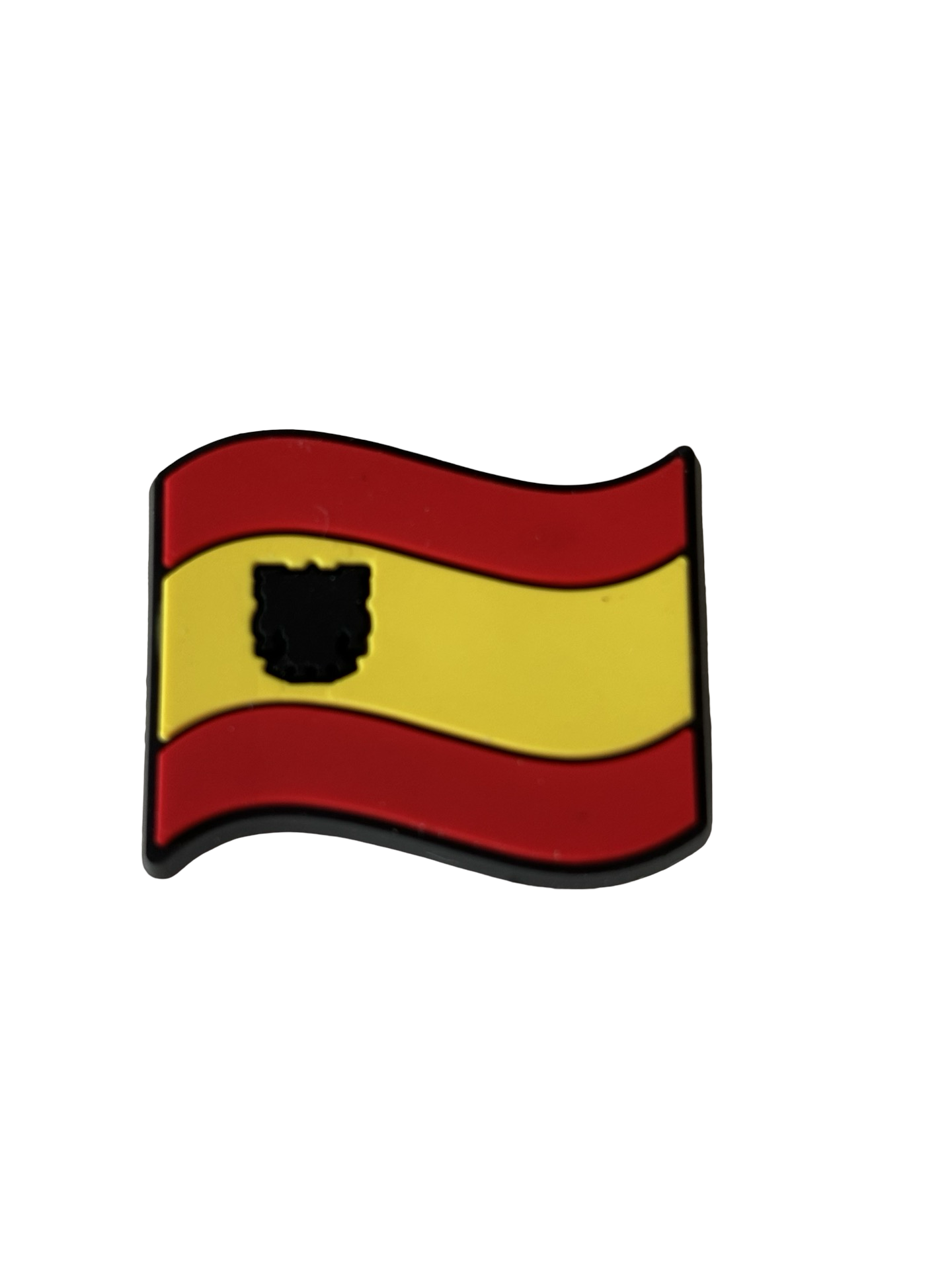 Add a touch of Spanish flair to your croc shoes with our Spain Flag Croc Charm. Made from high-quality materials, this shoe charm features the iconic design of the Spanish flag. Show off your love for Spain and stand out from the crowd with this unique croc charm.