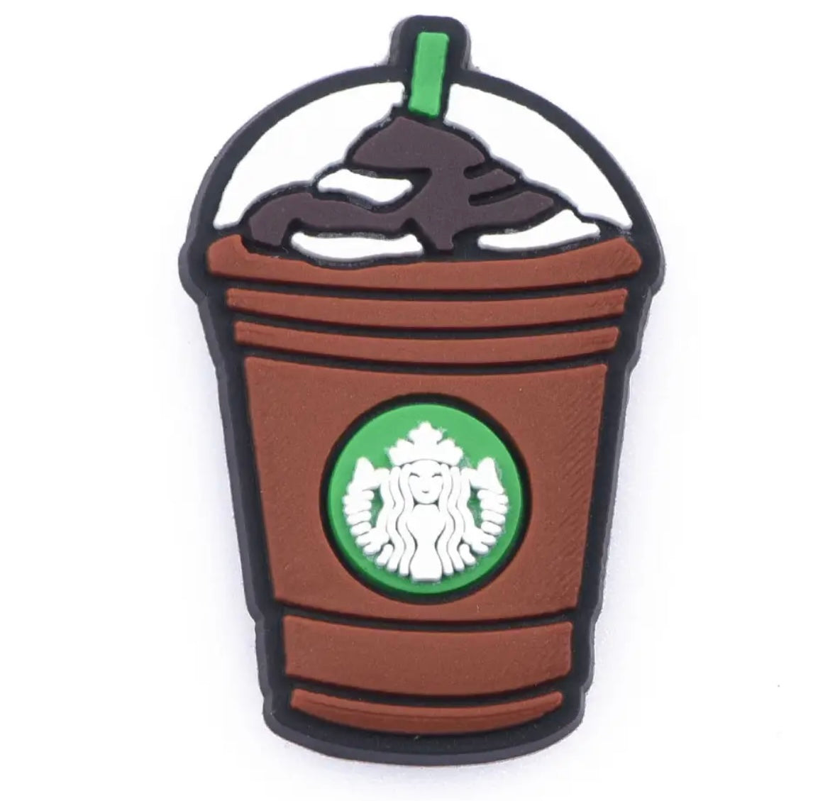 Enhance your style with the Starbucks Frappuccino Coffee Croc Charm. Made with high-quality materials, this charm showcases the iconic Starbucks Frappuccino logo. Attach it to your bag, keychain, or anywhere you want to add a touch of caffeinated charm. Show off your love for coffee with this unique accessory.