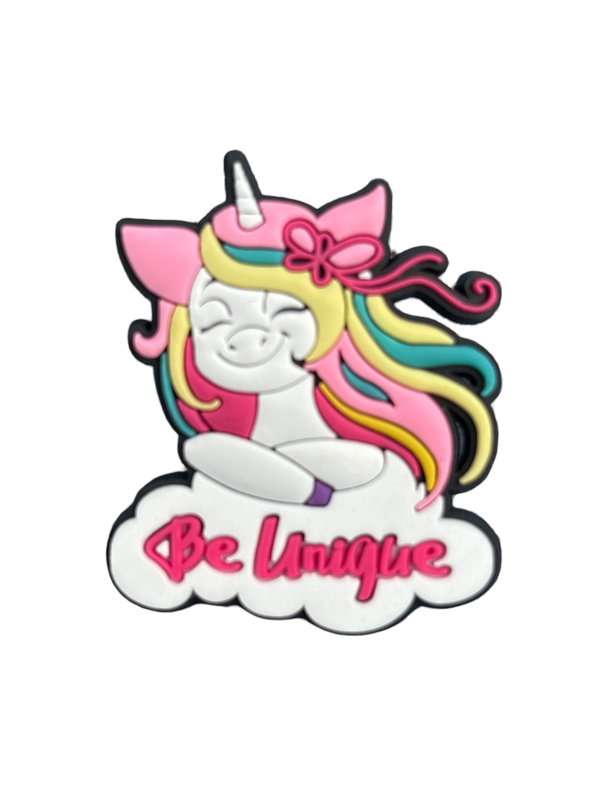 Enhance your personal style with our Unicorn Be Unique Croc Charm. This croc shoe charm adds a touch of whimsy to any footwear, making you stand out from the crowd. Crafted with high-quality materials, it's durable and easy to attach. Perfect for expressing your individuality.