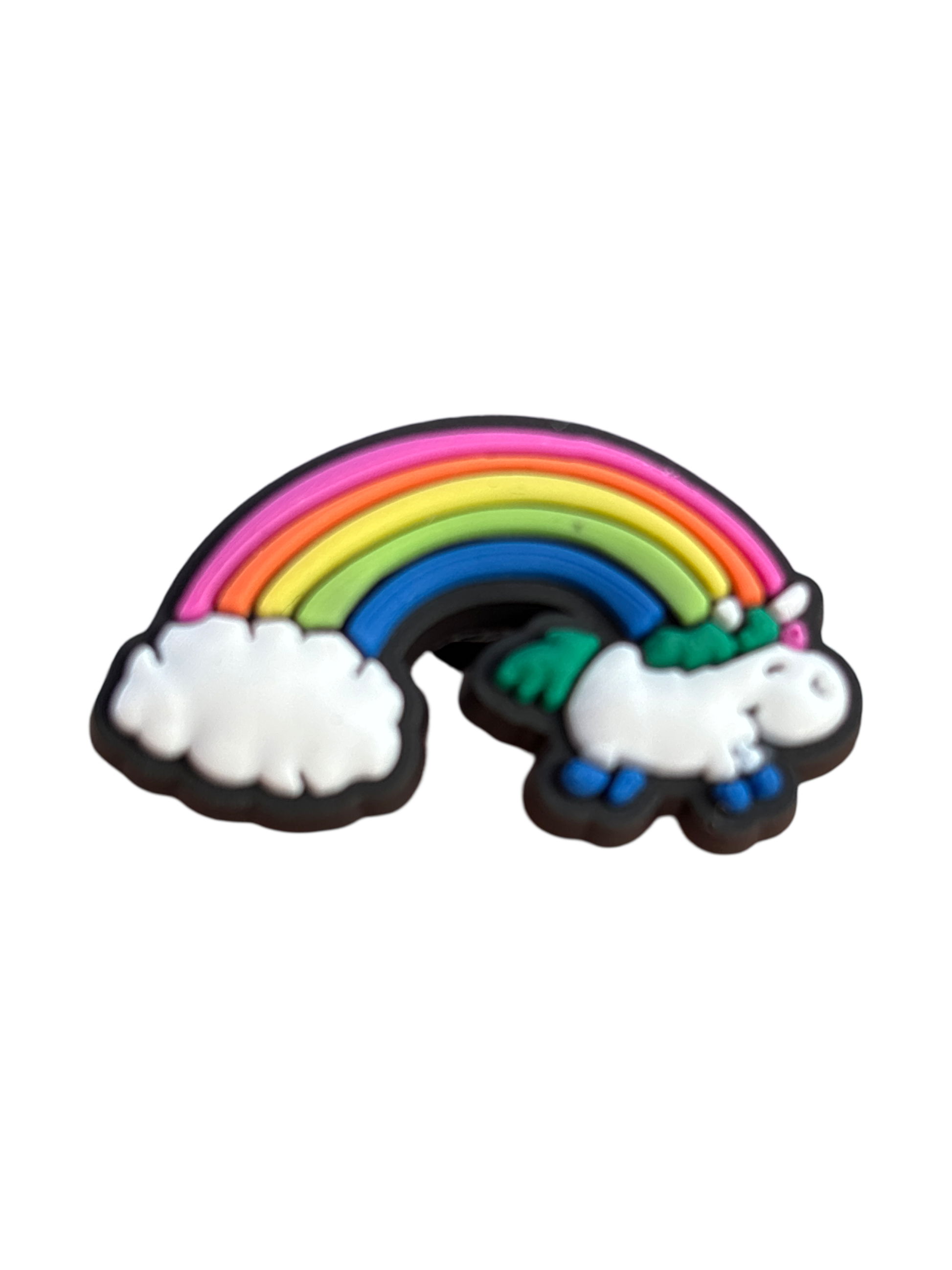 Elevate your shoe game with our Unicorn Rainbow Croc charm. Featuring a vibrant rainbow design, this croc shoe charm adds a playful touch to any outfit. Made with high-quality materials, it's durable and easy to attach. Step into a world of magic and style with this charming accessory.