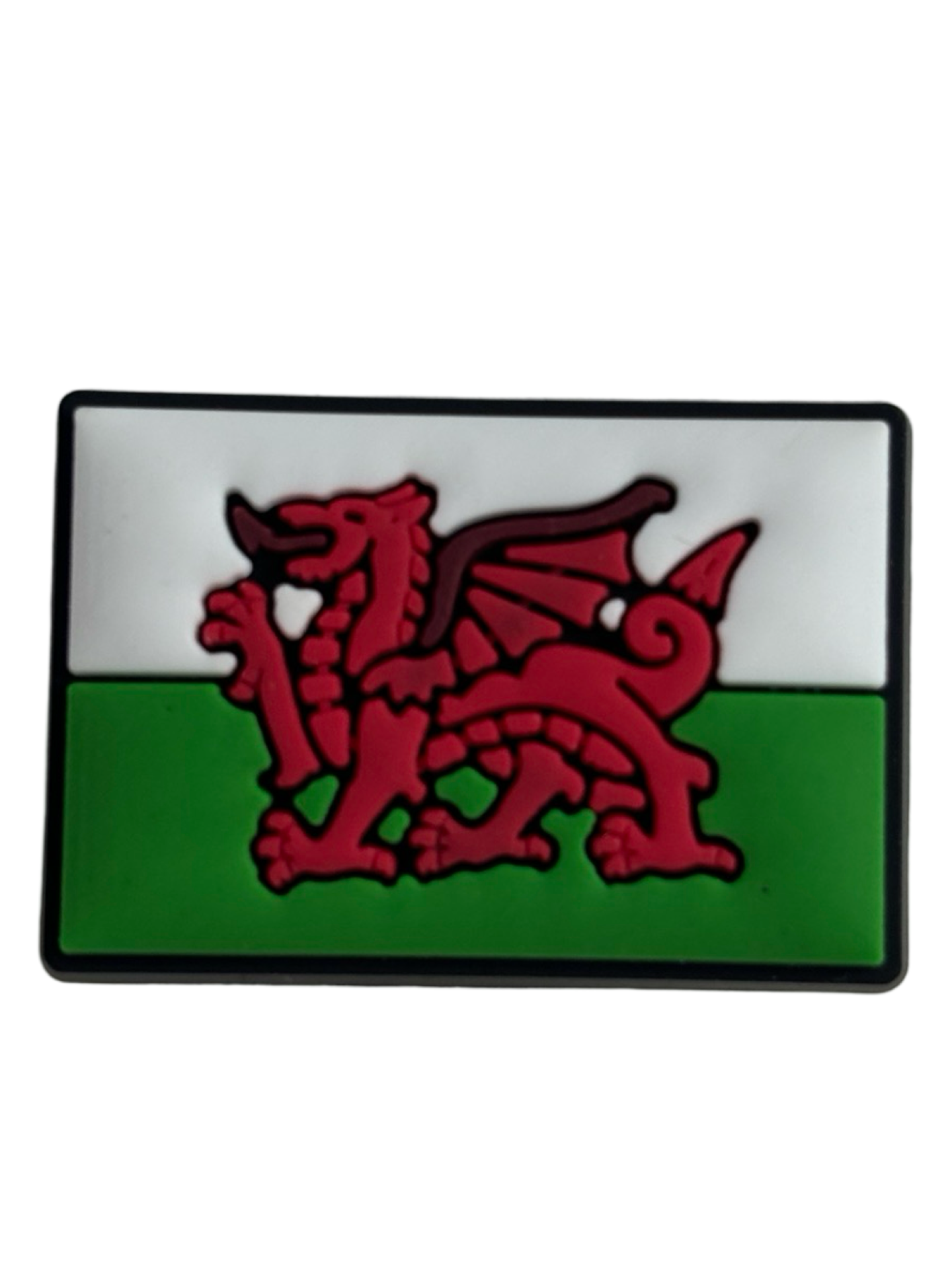 Add a touch of Welsh pride to your croc shoes with our Wales Welsh Flag Croc Charm. Made to fit securely on your crocs, this charm features the Welsh flag and is a great way to show off your love for Wales. Made with durable materials, it's the perfect accessory for any Welsh enthusiast.