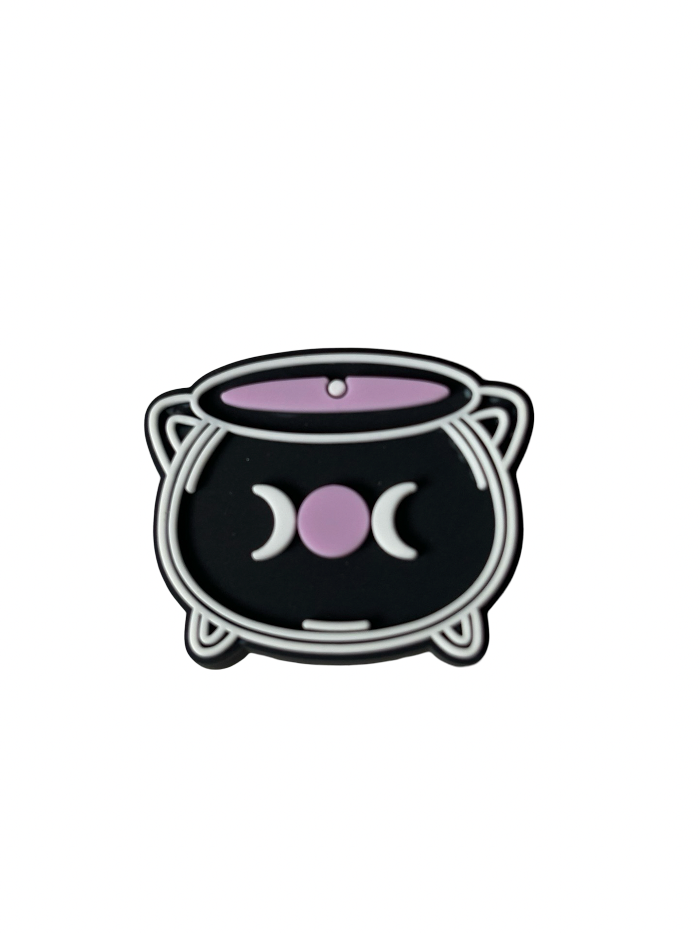 Add a spooky touch to your shoes with the Witches Cauldron Croc Charm. Made to fit perfectly on croc shoes, this charm features a cauldron design that will surely delight all witch lovers. Get ready to brew up some style and make a statement with this unique accessory.
