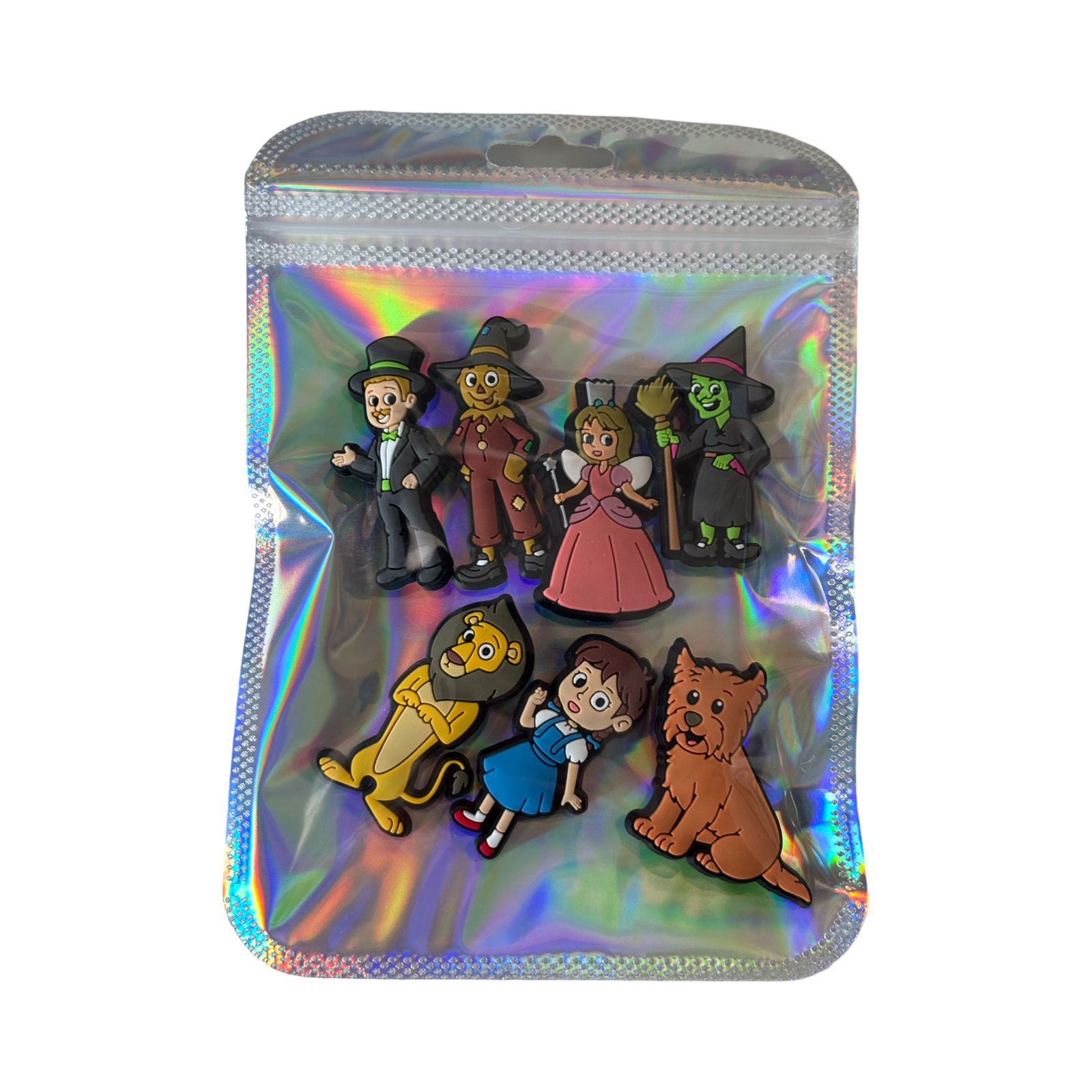 Enhance your shoe game with our Wizard of Oz Wicked Croc Charm Set. This set includes a variety of croc shoe charms to add a touch of personality to your footwear. Made with high-quality materials, these charms are durable and a great way to express your love for the classic film.